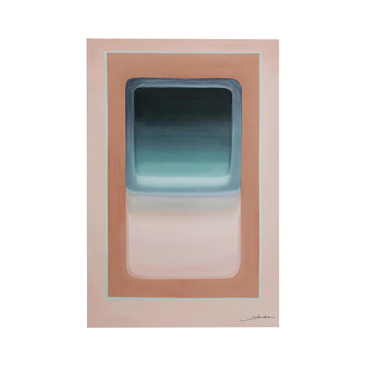 • Abstract canvas painting in pink and blue, 150 x 100 x 3.5 centimeters (H/W/D)