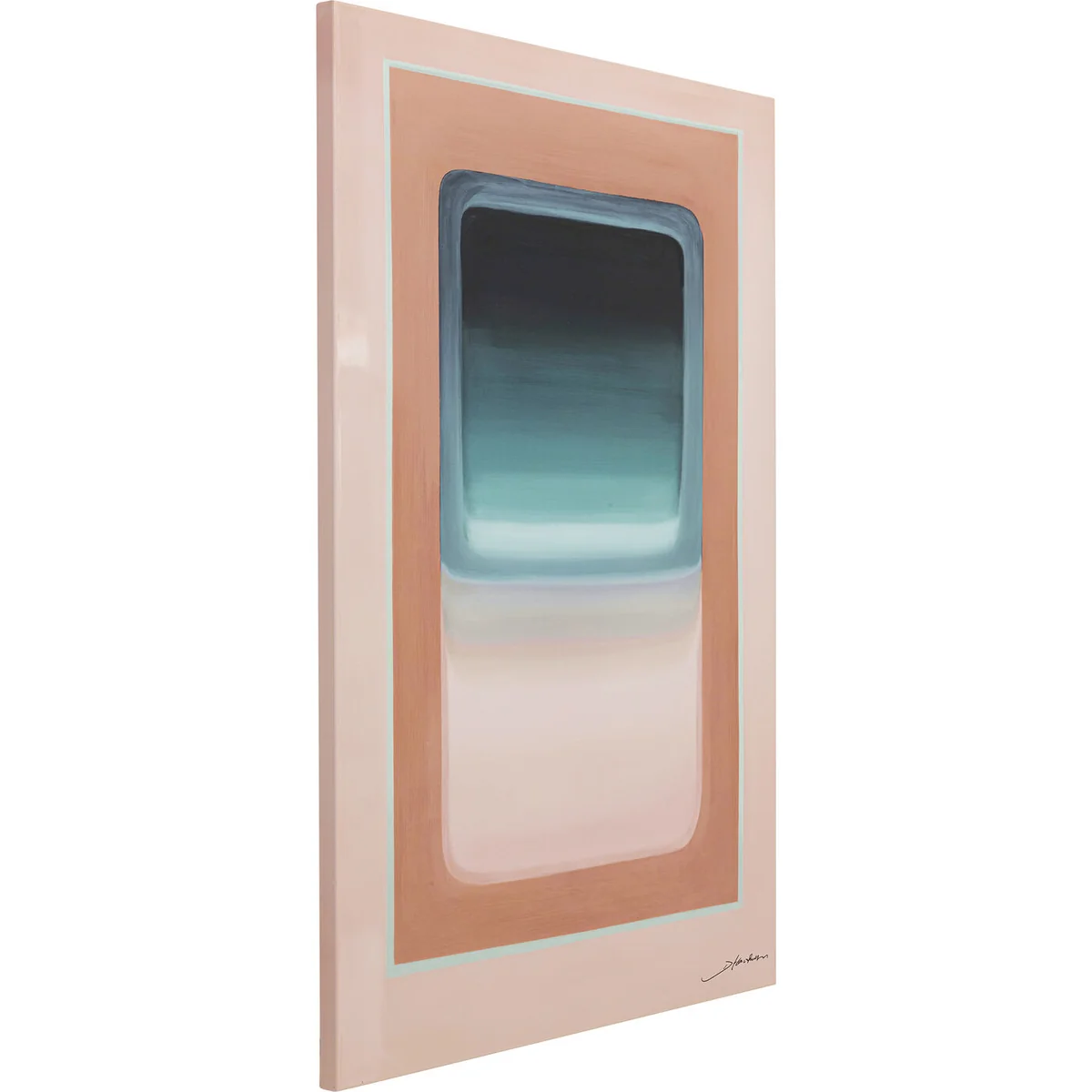 Key features of this artwork include its generous size of 150 x 100 x 3.5 centimeters, a harmonious blend of delicate pastel tones exuding a calming effect, and a high-gloss polyresin coating that ensures the longevity of the piece. Each mural from the Tendency series is a handmade and signed unique piece, already equipped with picture hooks at the back for easy wall mounting.
