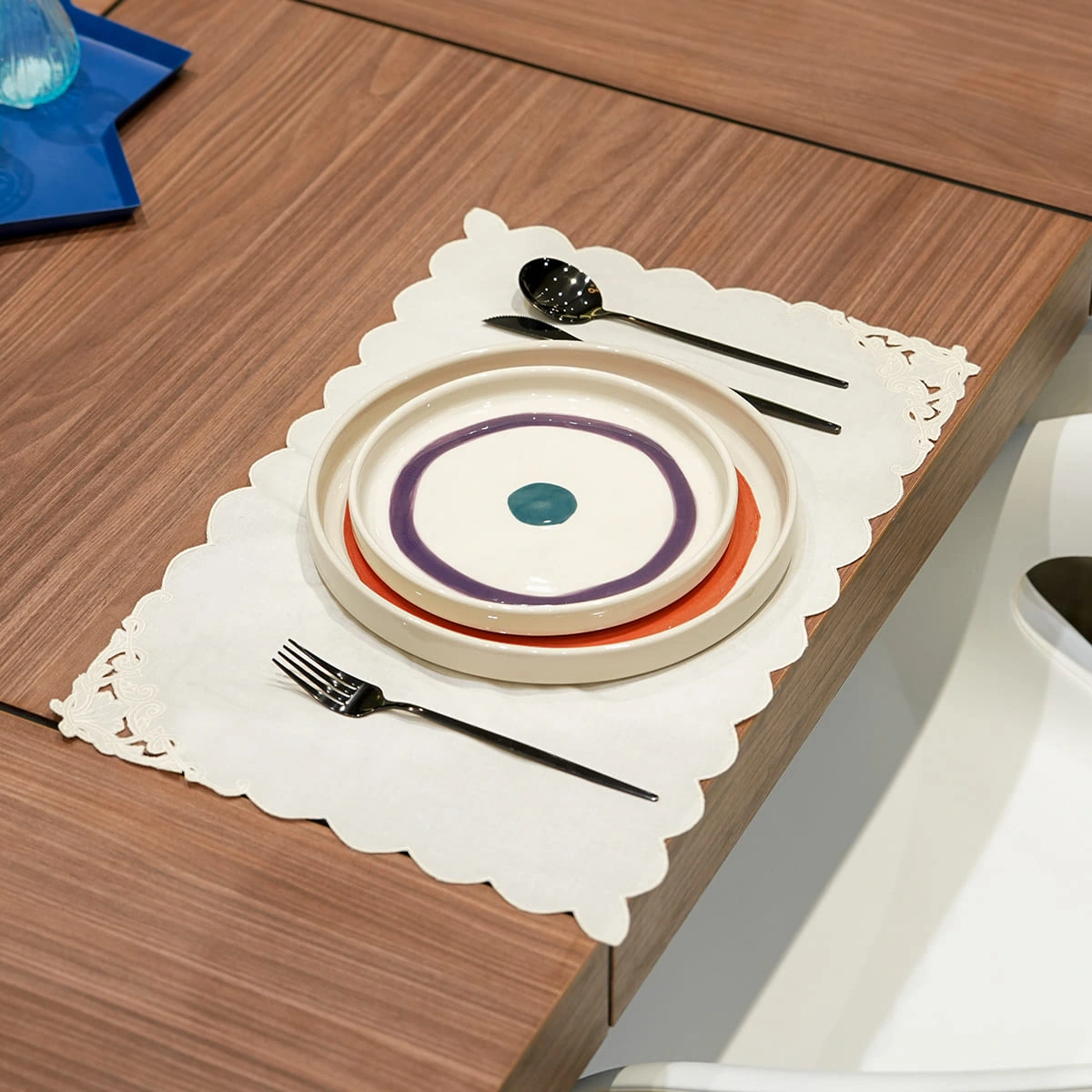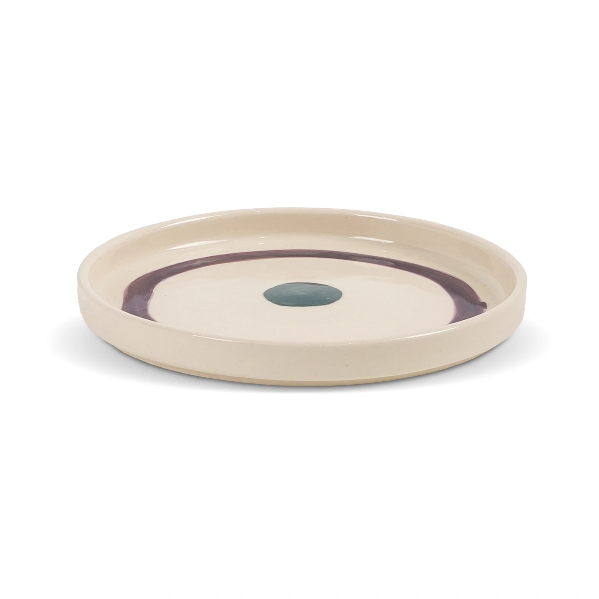 Thaalis Round Plate (Medium) in Multicolor is a ceramic round plate in medium size with a silver hue, providing an elegant backdrop for plated meals and festive occasions.