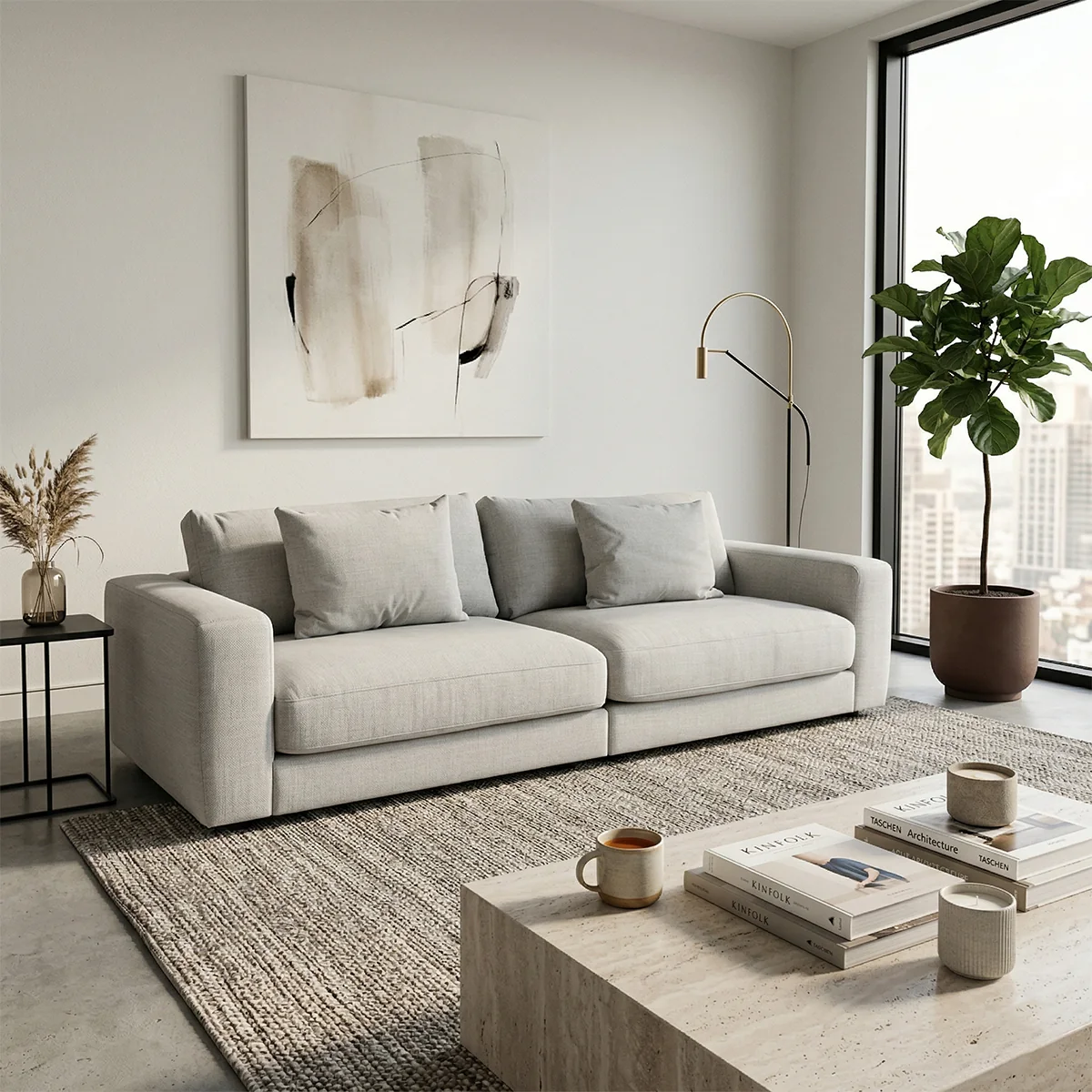 | Material: | Fabric: 100% Polyester; Filling:seat cush foam hr35kg / back cush silicone fluff; Frame:chipboard/fiberboard/wood pine/Wave Spring/plywood; Legs:wood alder |