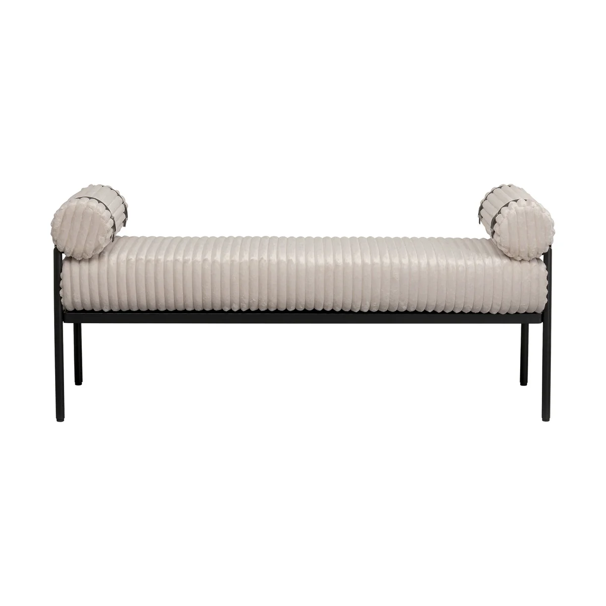 • Soft upholstered bench with corduroy in beige and black, 62 x 140 x 40 centimeters (H/W/D) • The soft corduroy cover in soft beige and black leather-look details create a stylish look • The slim frame in black creates a modern contrast and is made of robust steel • Can also be easily integrated into smaller living concepts thanks to its narrow dimensions • Flexible use - as a cozy seat or as a stylish display shelf