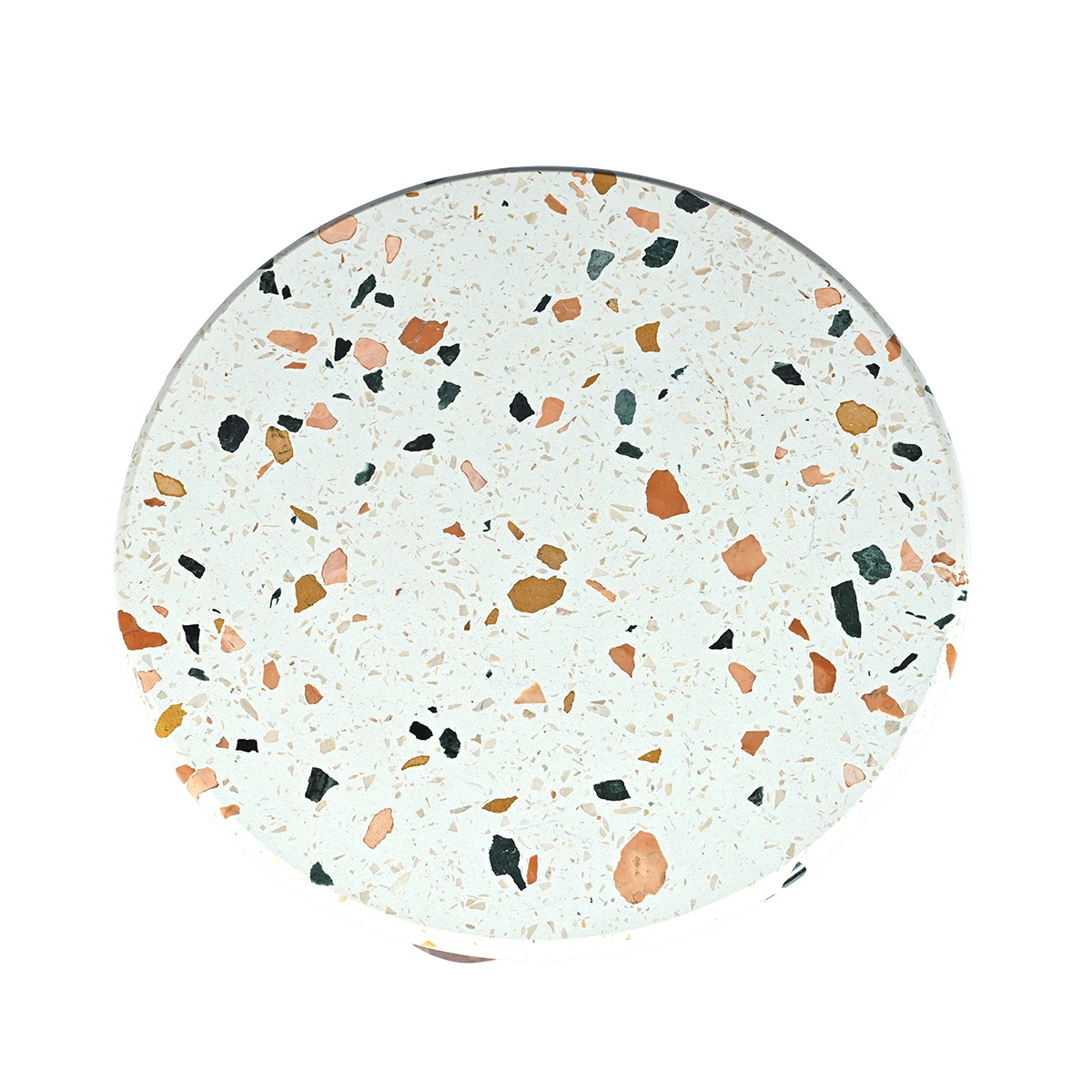Tinto Side Table in white multicolor is a round accent table designed to add texture and modern appeal.