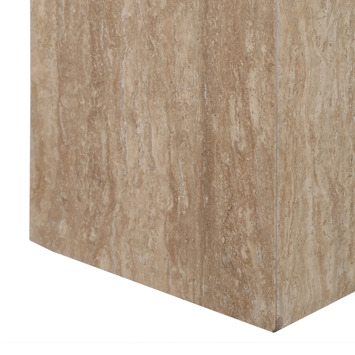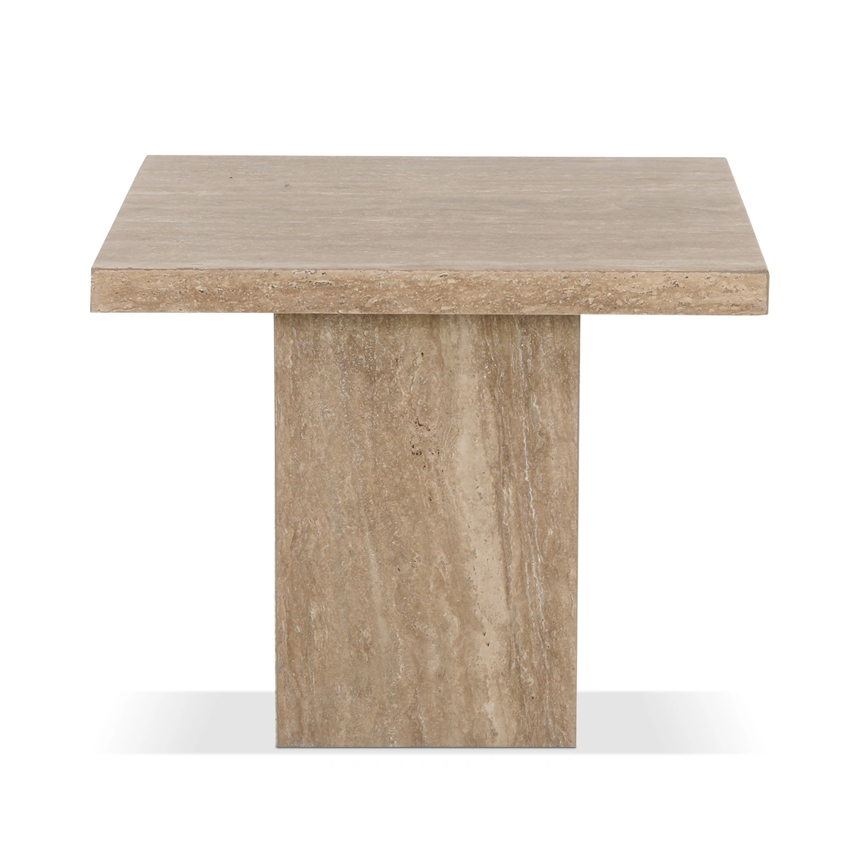 Tivoli Lamp Table in dark beige is a travertine marble lamp table crafted for compact contemporary accent styling. Made with travertine marble and a solid base, it offers durability and elegance. Dimensions: L 60 cm, W 60 cm, H 50 cm.