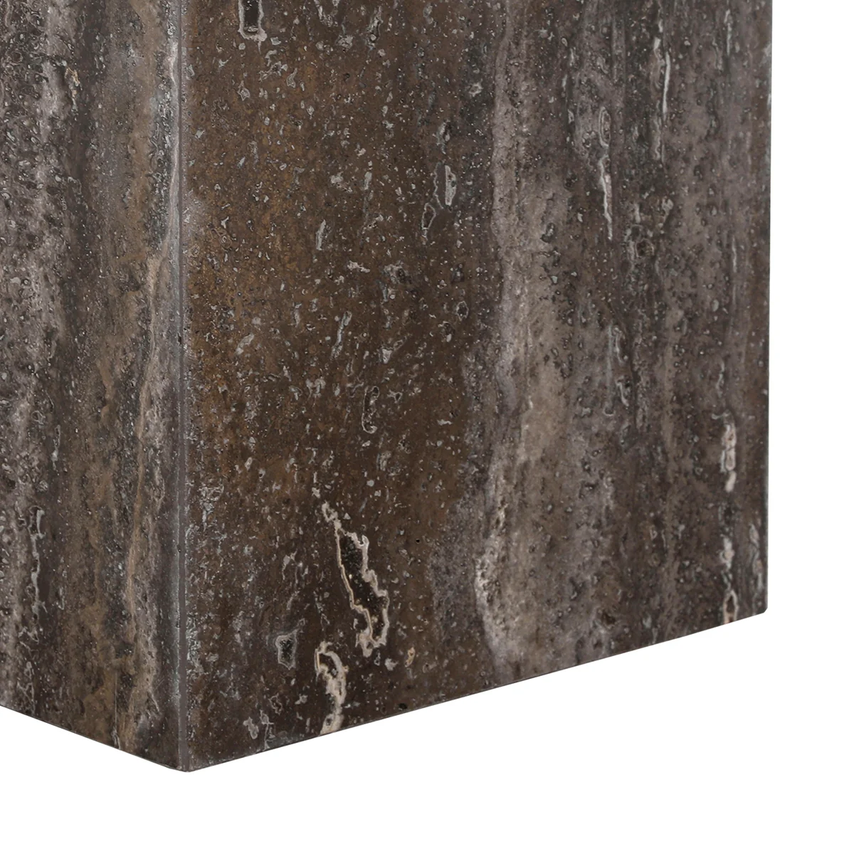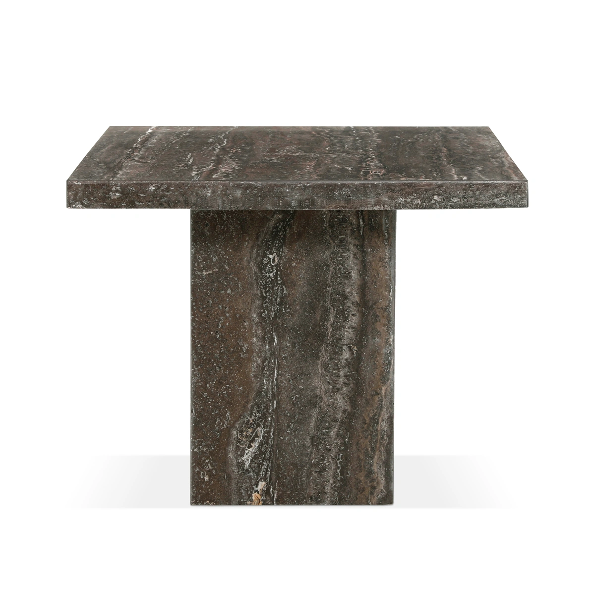 Tivoli Lamp Table in chocolate is a travertine marble lamp table crafted for compact contemporary accent styling. Made with travertine marble and a solid base, it offers durability and refined texture. Dimensions: L 60 cm, W 60 cm, H 50 cm.