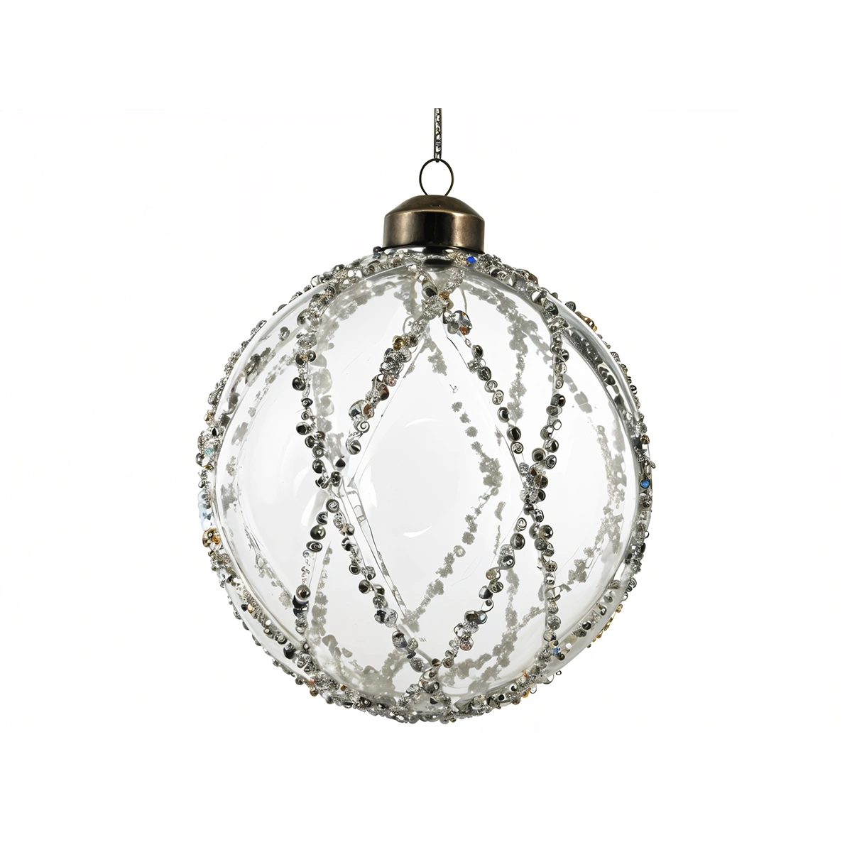 The key features of this sophisticated ornament include its glossy surface, delicate diamond accents, and 10cm size. Crafted from clear glass with silver detailing, the ball radiates a refined, radiant effect, adding a touch of glamour to your decor.