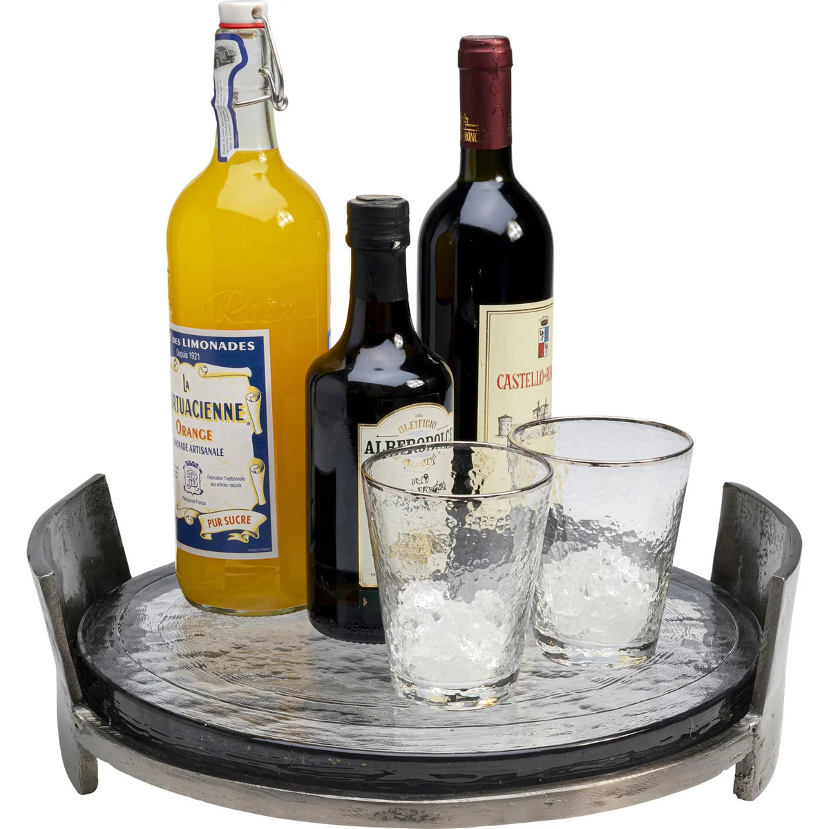 Elio Tray is a stylish and functional round tray with a smooth, polished finish. Its minimalist design makes it ideal for serving drinks or displaying decorative pieces, adding a refined touch to any table setting.