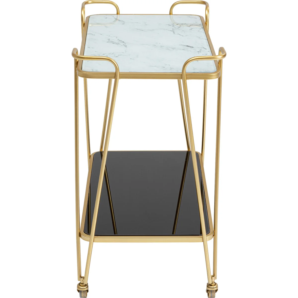 Our West Coast Tray Table is a unique blend of style and functionality. It measures 60 cm in length, 37 cm in depth, and stands 68 cm high. The golden steel lacquered frame adds an elegant touch to its design, making it a standout piece. The table is perfect for holding beverages, snacks, or even decorative items.