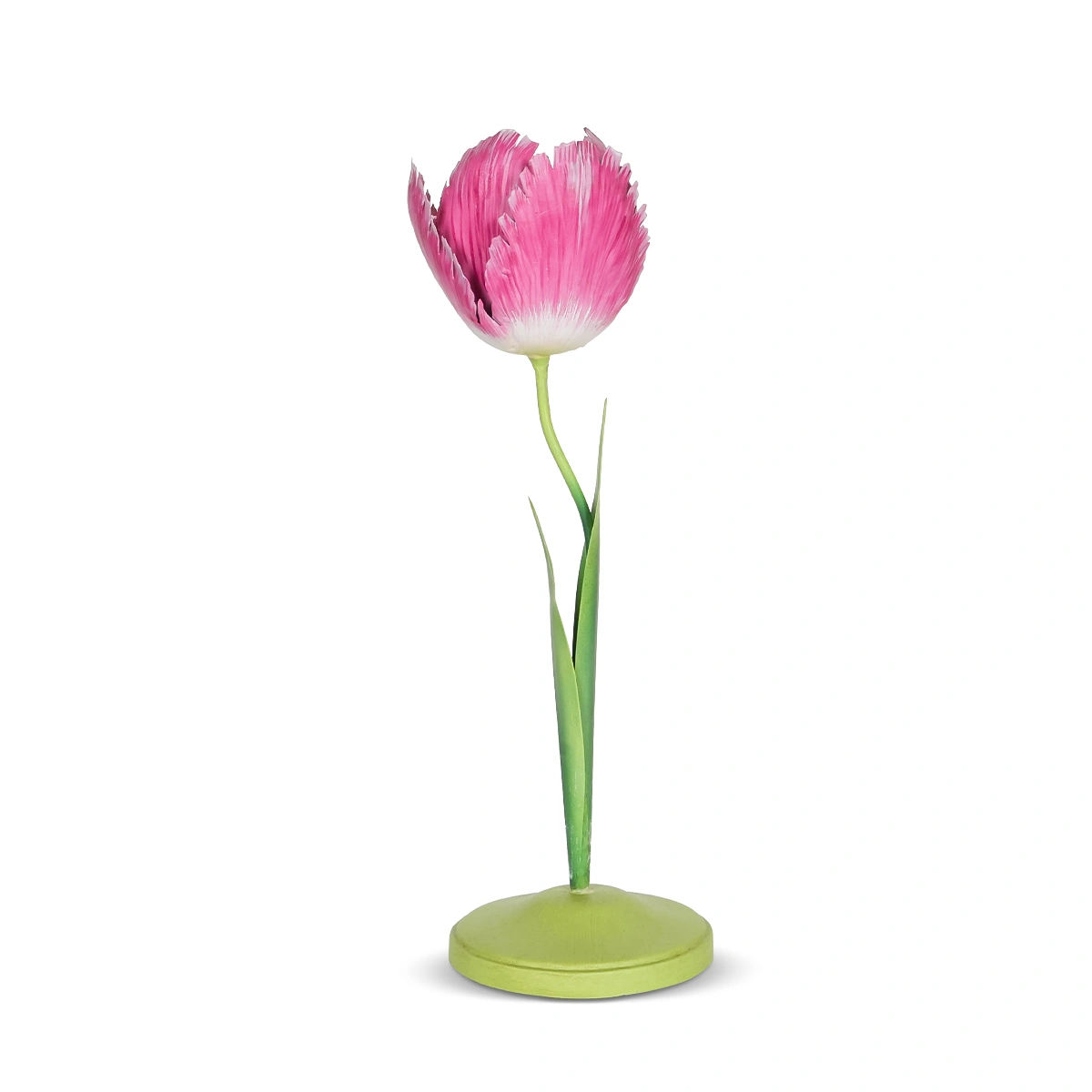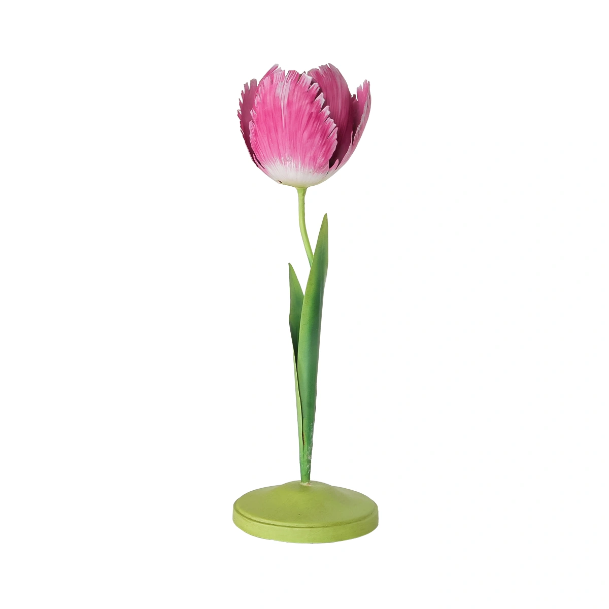 Measuring 10 cm in length, 40 cm in width, and 30 cm in height, this small candle holder is made from sturdy metal, ensuring durability. Its pink color adds a warm, soothing touch, while the tulip-inspired design offers a unique aesthetic appeal.