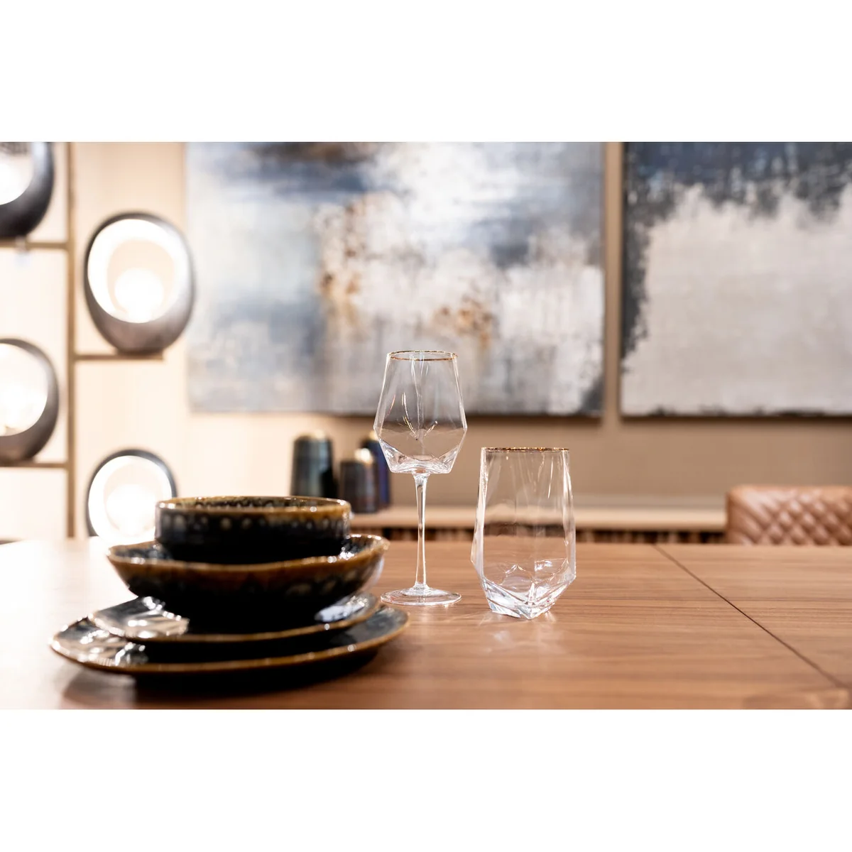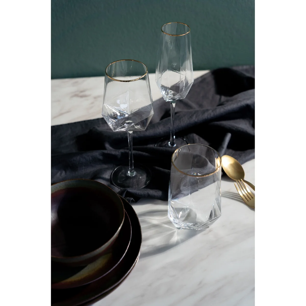 The glasses in the Diamond range feature clear, geometric shapes and a subtle gold rim that adds an elegant touch to any drink. Whether for special occasions or stylish everyday use - they are a real eye-catcher on any table. Combined with plain porcelain or modern metal accents, the glasses really come into their own and bring a touch of luxury to any interior. A must-have for design lovers and connoisseurs!