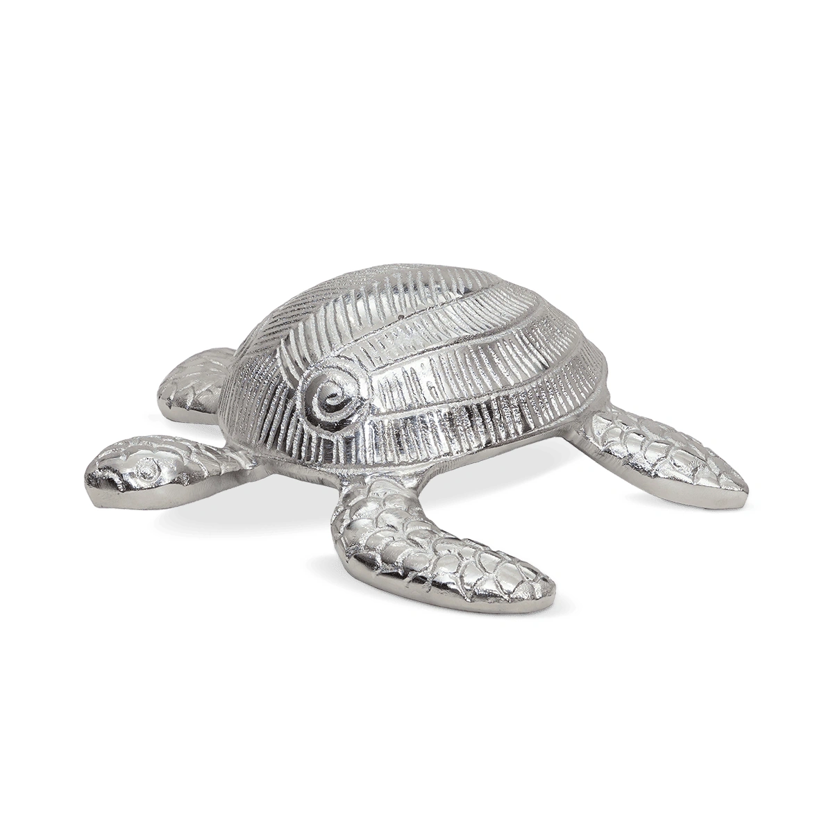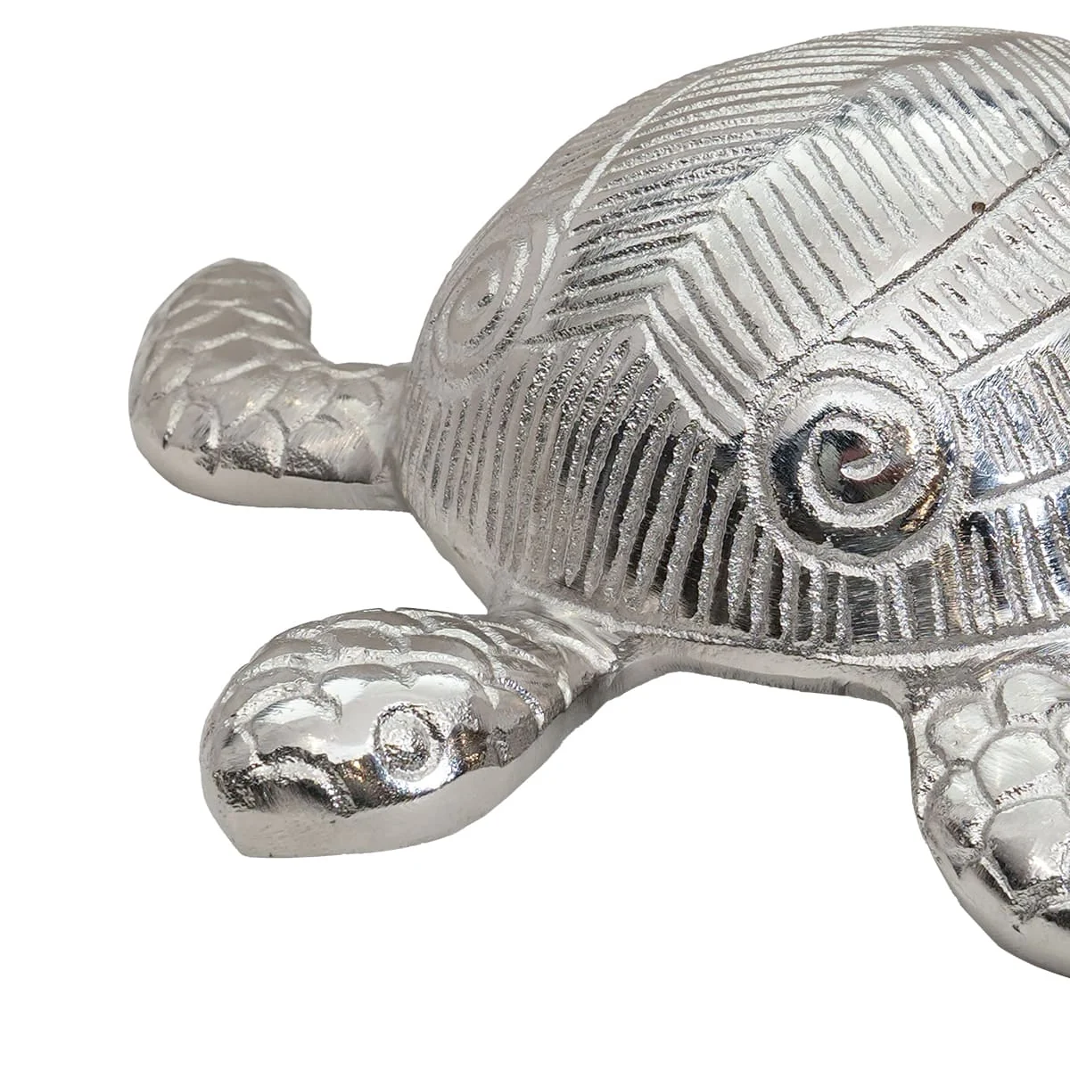 The Raw Silver Turtle Decorative Object, a timeless piece of home decor, artistically merges form with natural inspiration. Ideal for enhancing the aesthetic appeal of your console displays or coffee tables, this piece is sure to captivate your guests.