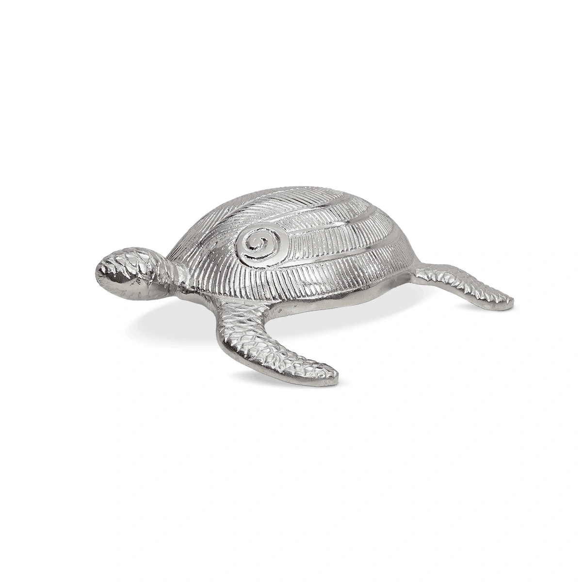 Embrace calmness and elegance with the Raw Silver Turtle Figurine 2. Made from high-quality aluminium, this decorative piece grants your space a gentle, dynamic movement.