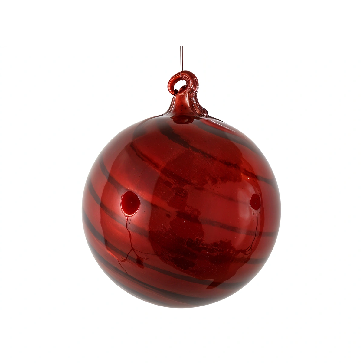 This ornament is crafted with a detailed twist pattern that catches the light beautifully. Its timeless red color and classic design make it an essential addition to your home decor. Notably, it's made of high-quality glass, ensuring it will last for many holiday seasons.