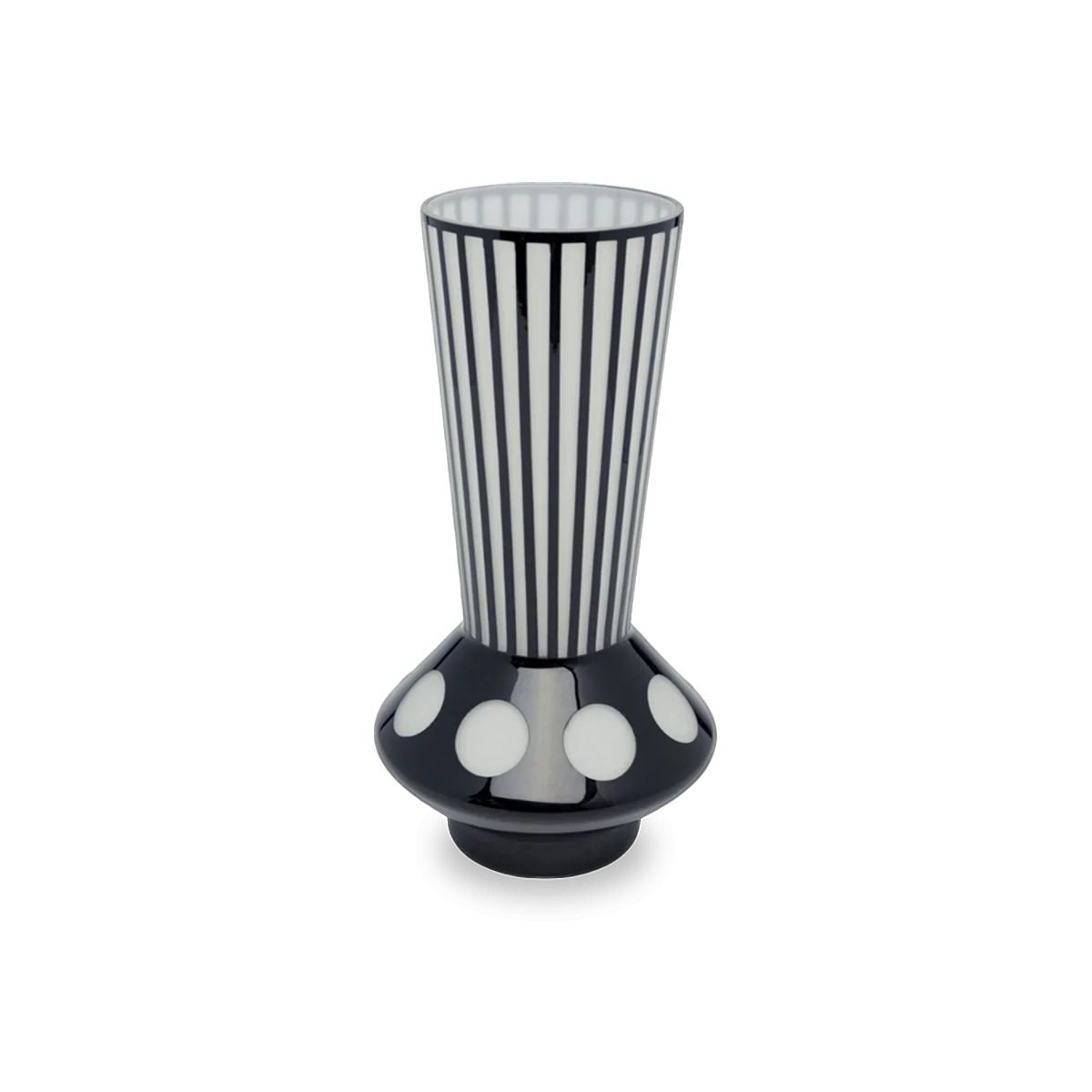 This black and white vase with its cheerful dots and striking stripes has a wonderfully nostalgic effect. Its partly bulbous, partly straight shape gives the design that certain something. Every bouquet of flowers looks good in this glass vase. On its own the glass object also cuts a fine figure. You are deciding in favour of a piece of craftsmanship and receive a real unique specimen. It will make decorating and arranging stylish bouquets twice as much fun. A combination of several vases from the Brillar series is also an ideal way to set the scene for highlights in your living room and for flowers.
