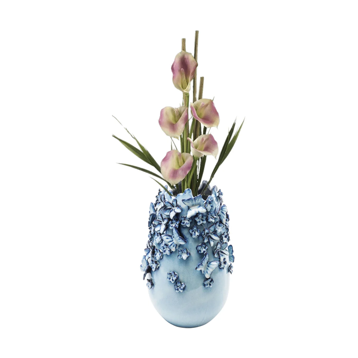 Experience the benefits of integrating this vase into your home. Its light blue color brings a calming effect, while its butterfly motif adds a touch of nature-inspired elegance. The durable stoneware material ensures longevity, promising many years of aesthetic pleasure.