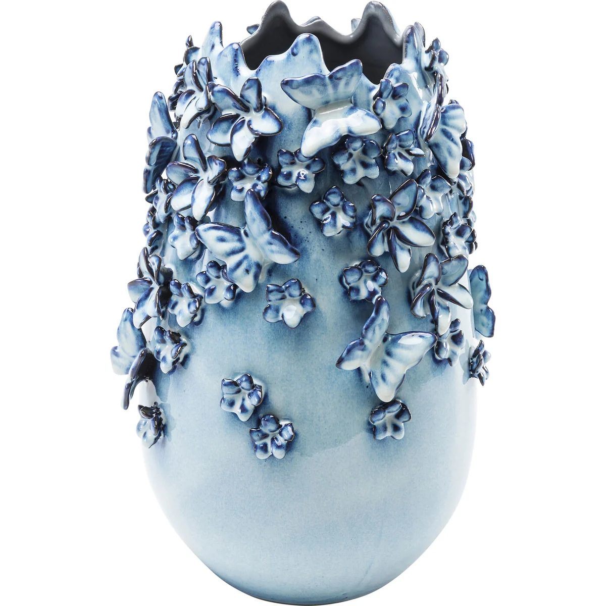 Introducing our Light Blue Butterflies Vase in stoneware, the perfect addition to any modern decor scheme. This 35cm piece is exceptionally designed, featuring a whimsical butterfly motif.