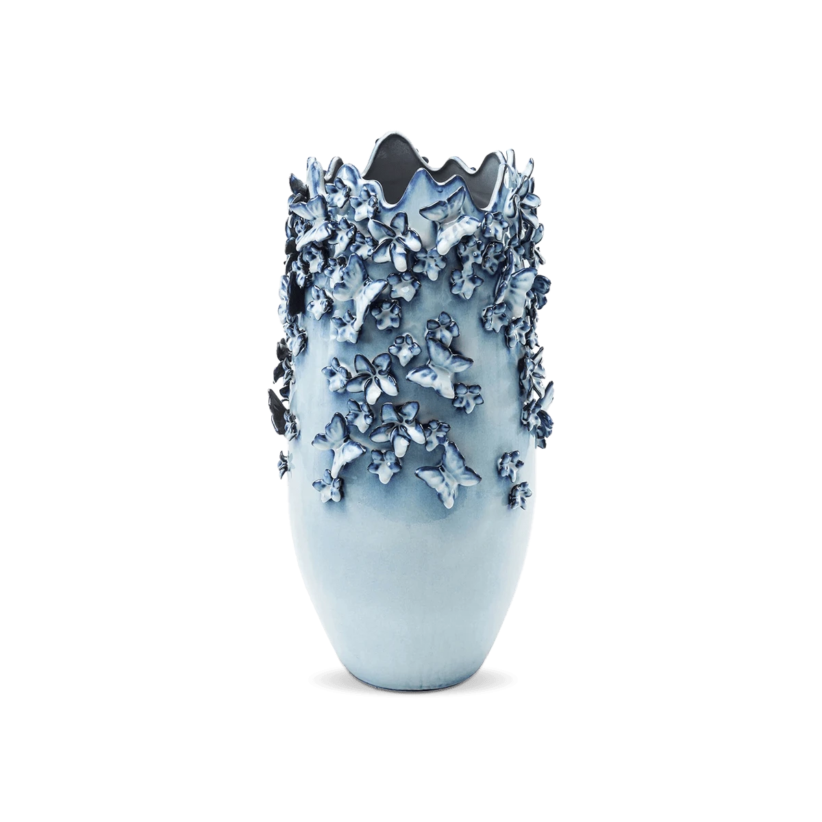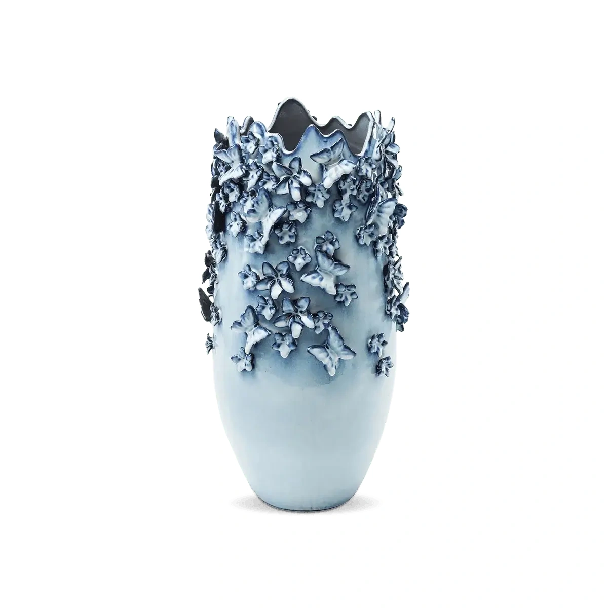 Enliven your space with the Light Blue Stoneware Butterflies Vase, a perfect blend of form and functionality.