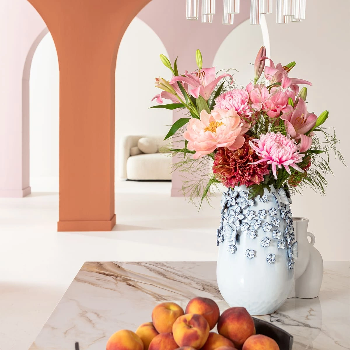 This 50cm tall vase boasts a vibrant light blue color that is sure to add a dash of charm to any room. The sophisticated stoneware material ensures durability, while its unique butterflies pattern offers an appealing look. Its dimensions of L 28 cm, D 28 cm, and H 49.5 cm make it an impressive piece.
