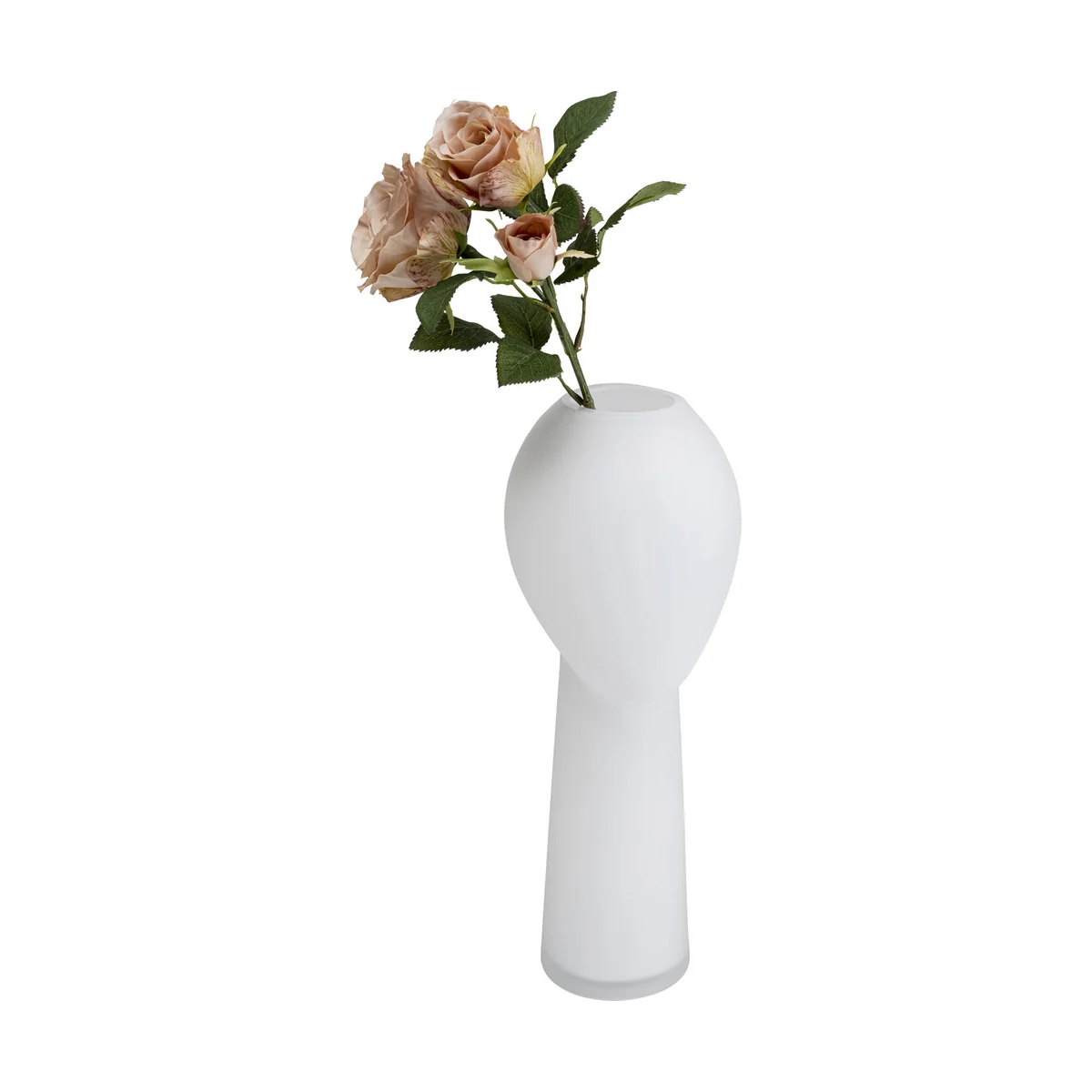 - Modern, white vase, 40 x 18 x 15 cm (H/W/D) - With its satin finish the white glass underlines the minimalist design - Each flower vase is carefully crafted by hand and is unique - The asymmetrical shape of the glass vase is reminiscent of the reduced sculpture of a head - With its distinctive form Cabeza definitely takes on the role of a decorative object