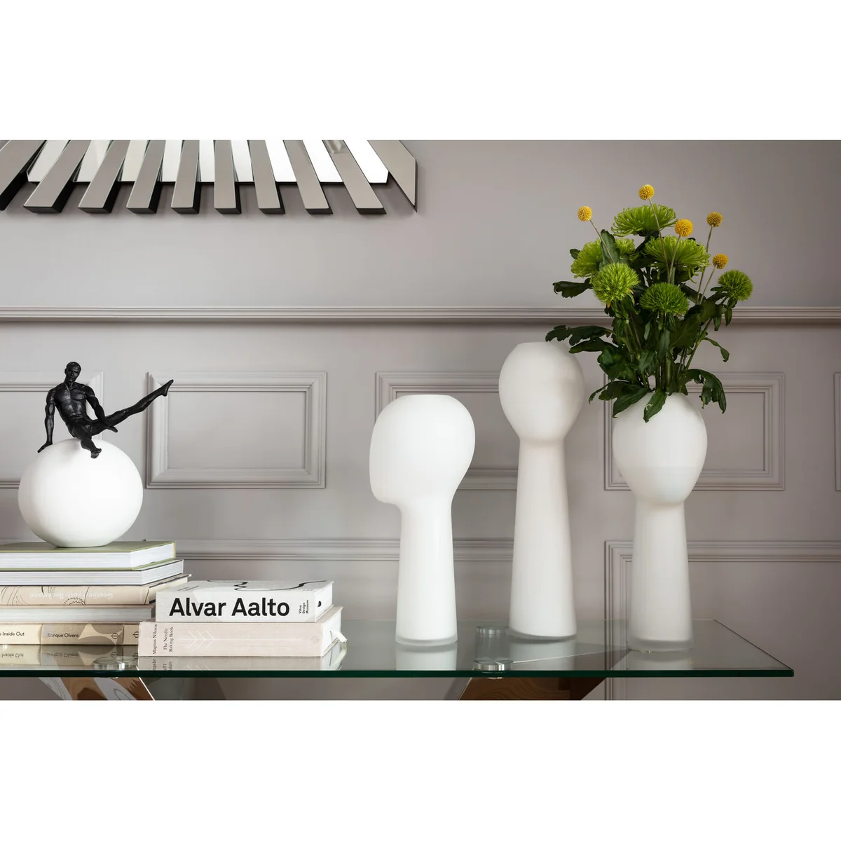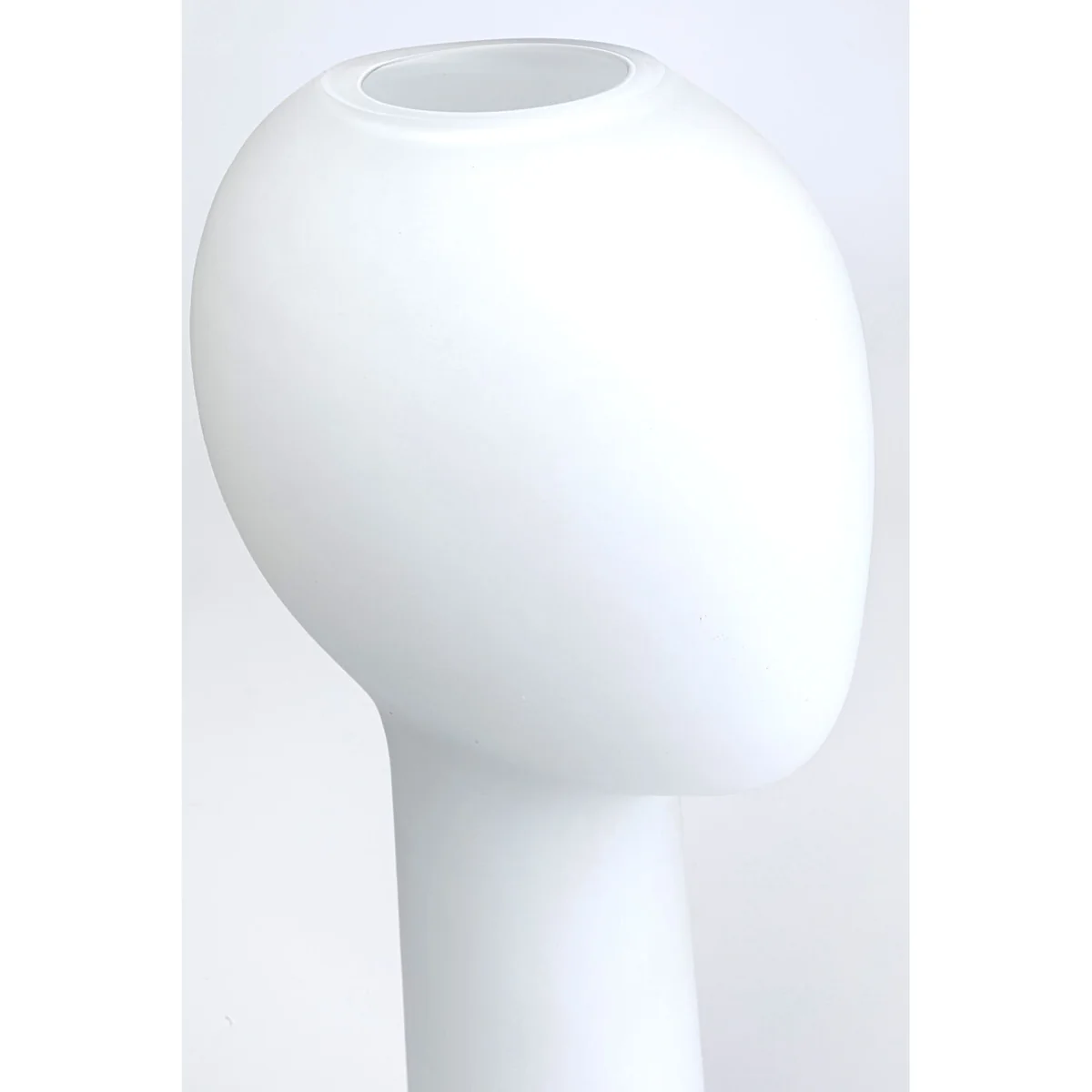 - A tall, white floor vase made of glass with a satin finish - The implied shape of a head makes the vase a trendy decoration - It radiates modern elegance and will enhance flowers of all colours - Give flowers as a gift next time together with this classy vase