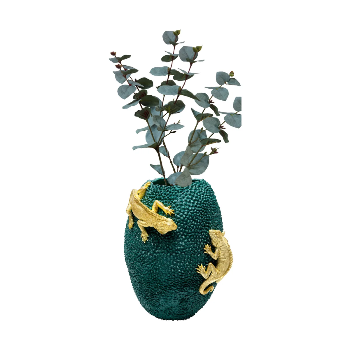 Meet the Chameleon Jack Fruit Vase in Golden Polyresin, a striking piece of home décor that's sure to enchant your guests.