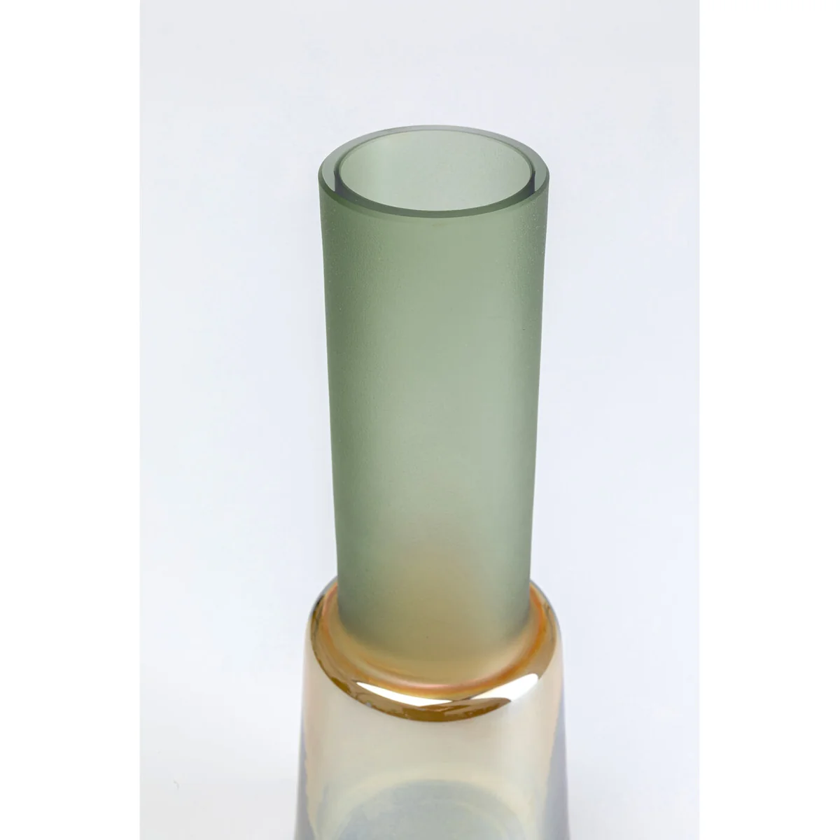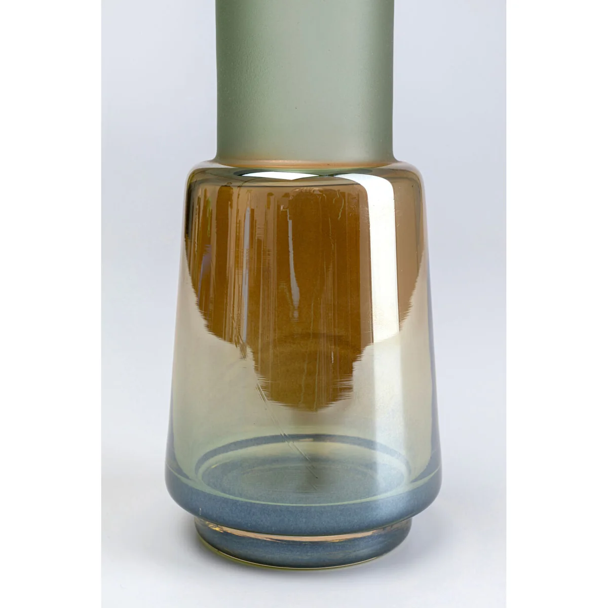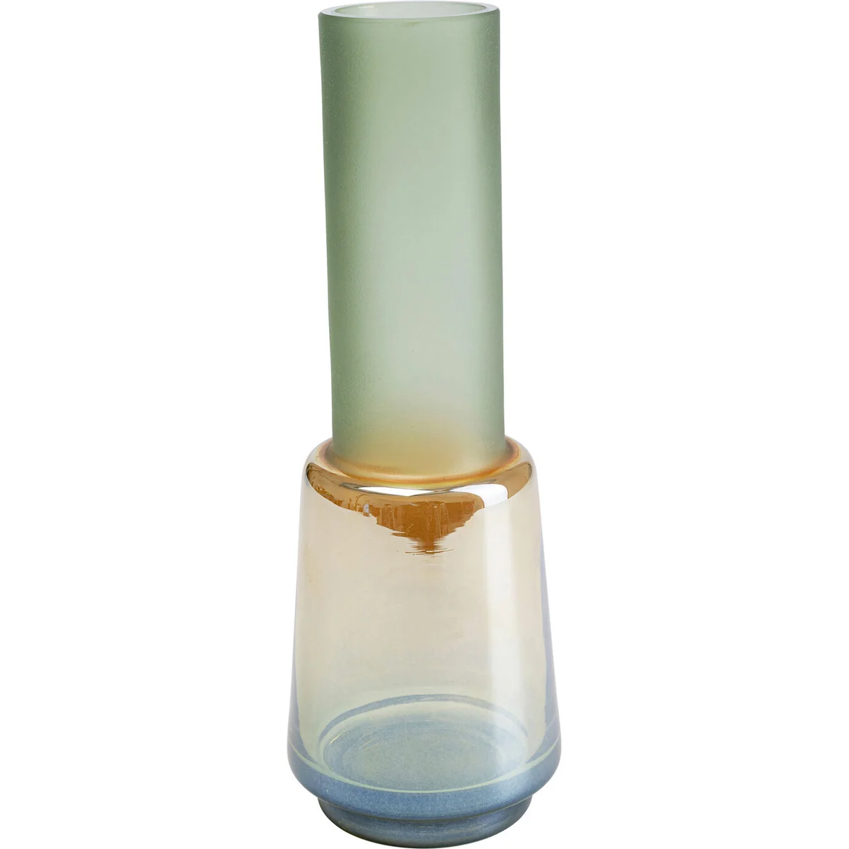 - Modern flower vase with geometric design, 26cm high - Coloured and satined glass in blue and green with soft colour transitions and a golden yellow highlight - Decoration idea: you can arrange glass vases in similar colours as a group