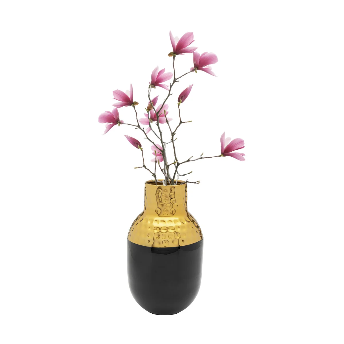 In black with a narrow opening and golden decorations: it's enough to make your heart blossom. The minimalist and understated design is a beautiful setting for flowers and bouquets of all kinds. Whether spring flowers, summer bouquets, autumn arrangements or Christmas decorations - here you can present your flower arrangements in their full glory and show them off to their best advantage. On the sideboard, the side table or the dining table, the understated design and the distinct shape will enhance any interior style.