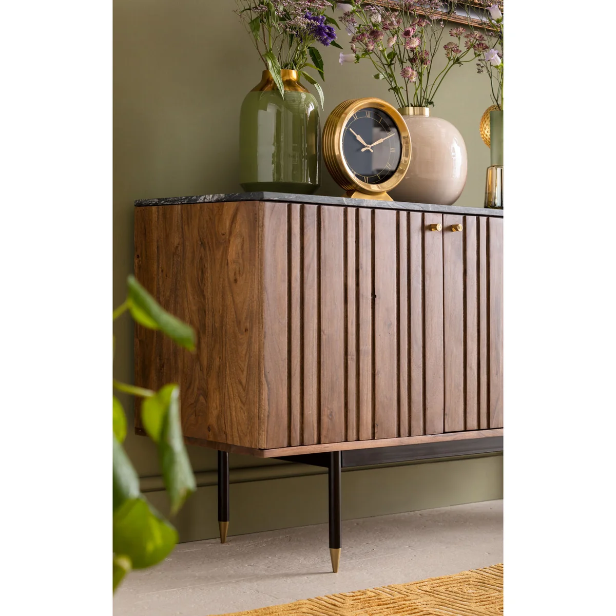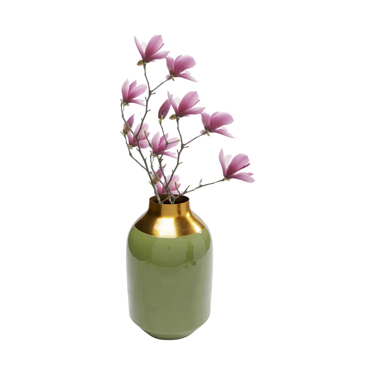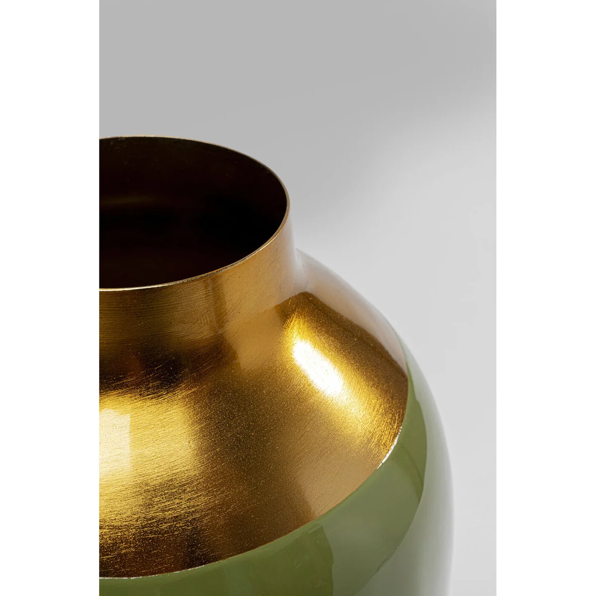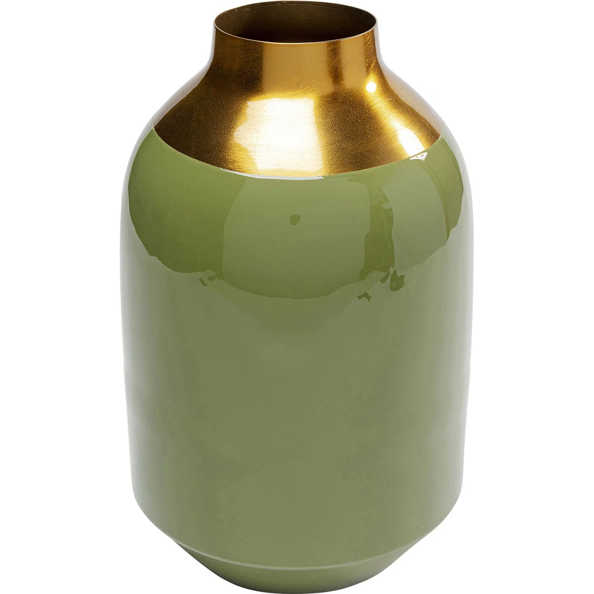 Green with a narrow opening and discreet decoration in gold - this 29cm high vase is a real enrichment for your vase collection. Classic and timeless in its form, the flower vase is compatible with any modern interior style and attractively accentuates all blossoms, branches or other decorative ideas. Whether on a glass table or wooden sideboard, the shimmering green surface will go well with your furnishing style.