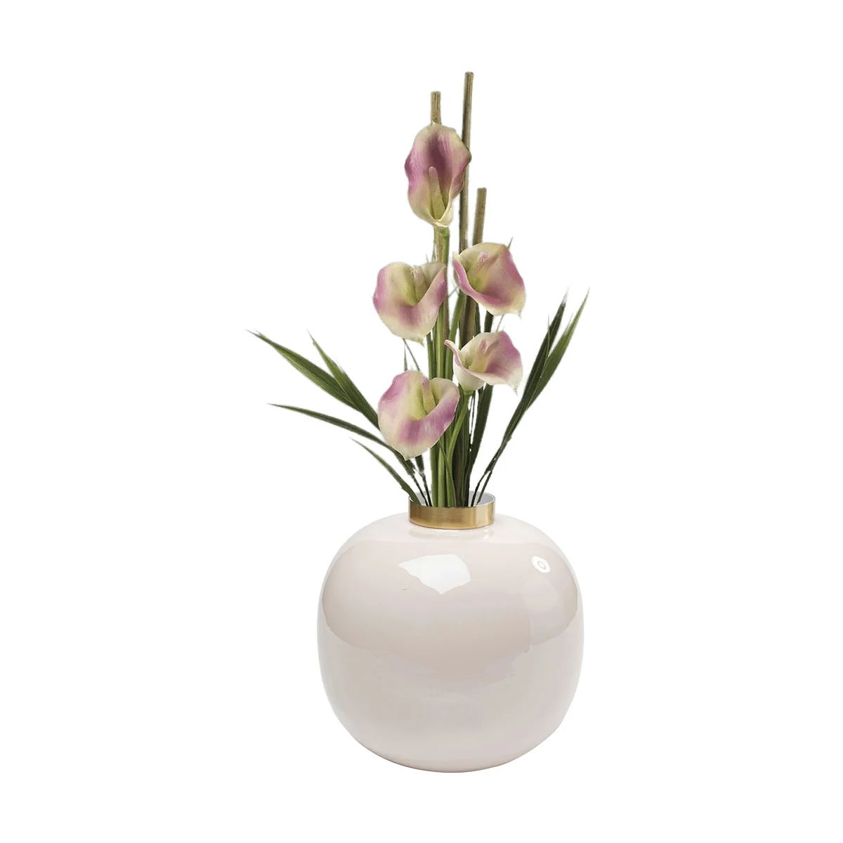The stylish white flower vase with its gold-coloured neck is a carefully hand-painted, one-of-a-kind piece. Whether long-stemmed roses or a fresh summer bouquet, the elegant vase is the ideal showcase for flowers. The round flower vase looks good on the living room table, but also on sideboards or large windowsills. In addition it's the ideal gift for those who love elegant accessories and gorgeous flowers.