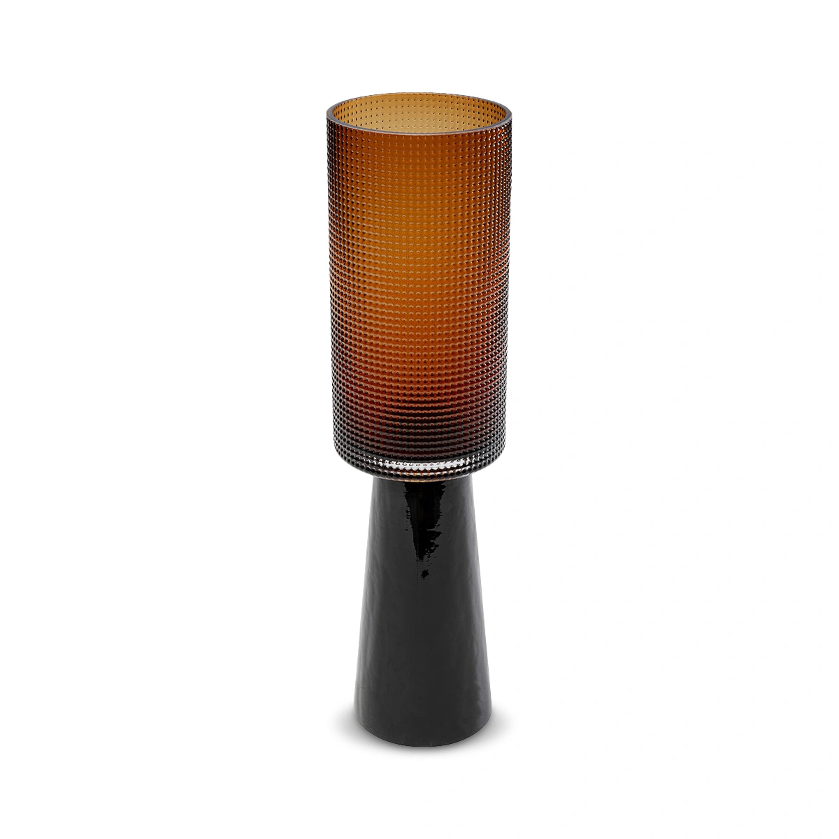 The Enigma vase in brown is a sculptural glass decorative piece designed to add warmth and modern elegance to interiors. Its tall form creates vertical interest in styled spaces. Crafted from colored glass, this vase features a smooth surface and rich tone. Its sculptural shape enhances contemporary décor arrangements.
