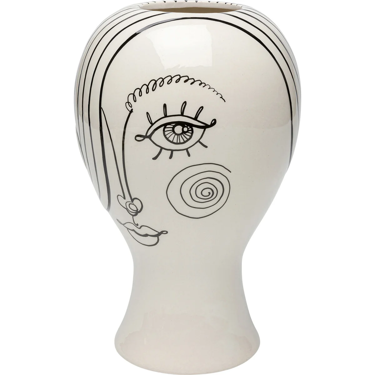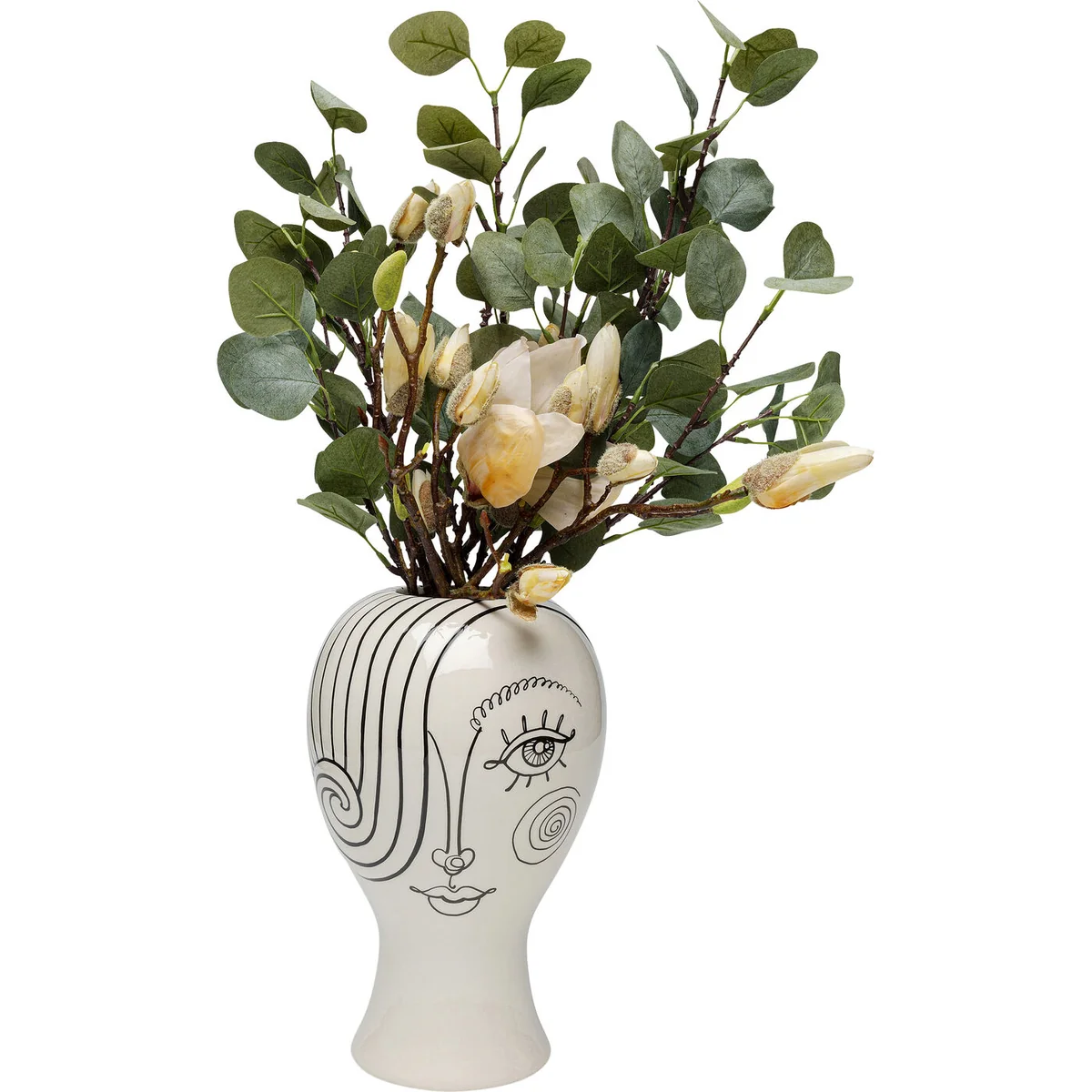 Made of ceramics and with a glossy glaze, the vase is robust and durable. Each vase is unique thanks to the hand-painted black contours that represent the face and give the design that certain something. Whether as a decorative element on a side table, as a table decoration or as part of a flower arrangement - the Favola Lady vase fits perfectly with other designer furniture and accessories and will add a touch of exclusivity to any room.