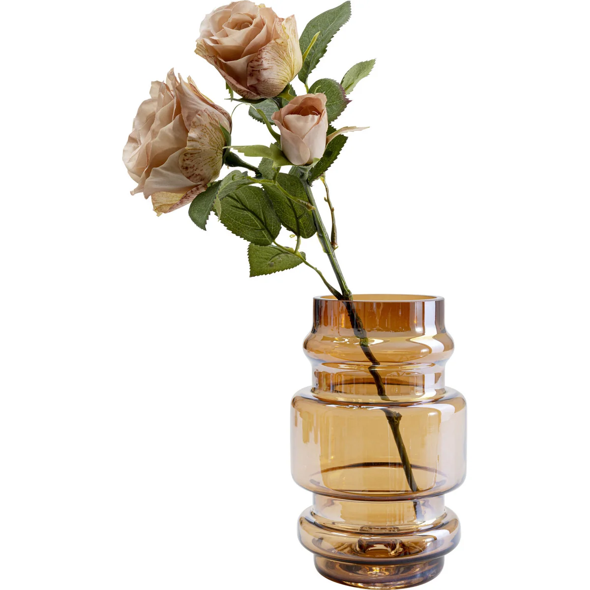 - A brown, semi-transparent glass vase with a shimmering finish, 19cm high - A modern decorative piece in a swinging Seventies style - At 19.5 cm high and 12.5 cm deep, it's the right size for windowsills and the like - When combined with a bouquet you've picked yourself, it makes a pretty gift idea