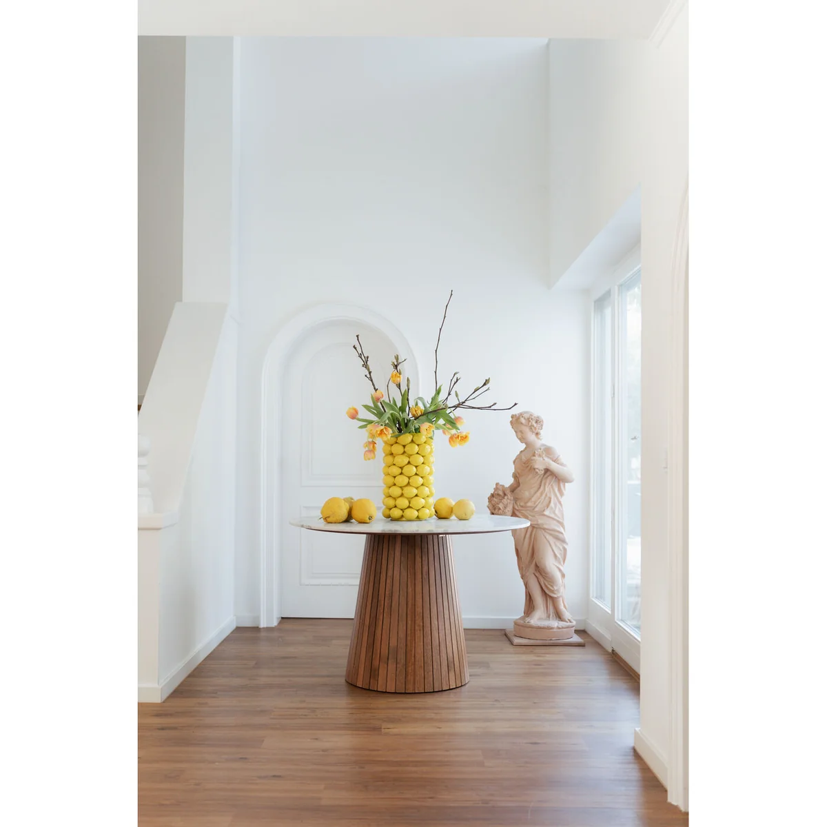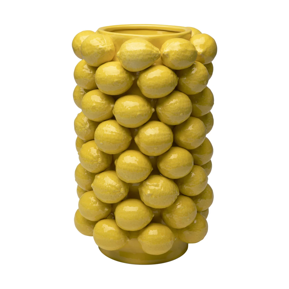 • Large lemon vase in yellow made of porcelain, 43 x 26 x 26 centimeters (H/W/D) • Go for the double pack of power vitamins for your home: the color yellow and lemons! • Each cylinder vase is handcrafted in great detail and is unique • This yellow vase is a beauty and a must-have not only for the summer table setting • Lemons are a wonderful ingredient for the Mediterranean style of living and dolce vita