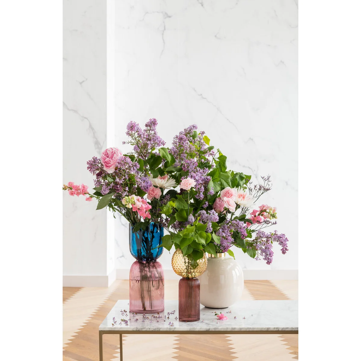 This 40cm tall vase features a stunning blue purple hue, achieved through a meticulous glass plating process. The vase measures 16.5cm in both length and diameter, making it a substantial piece that can easily hold a beautiful floral arrangement.