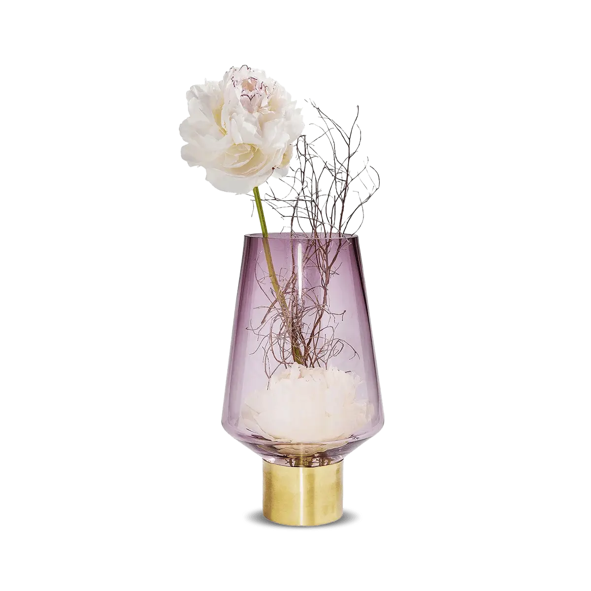 • Simple elegance: this handmade vase delicate lilac stands elegantly on a brass plated plinth