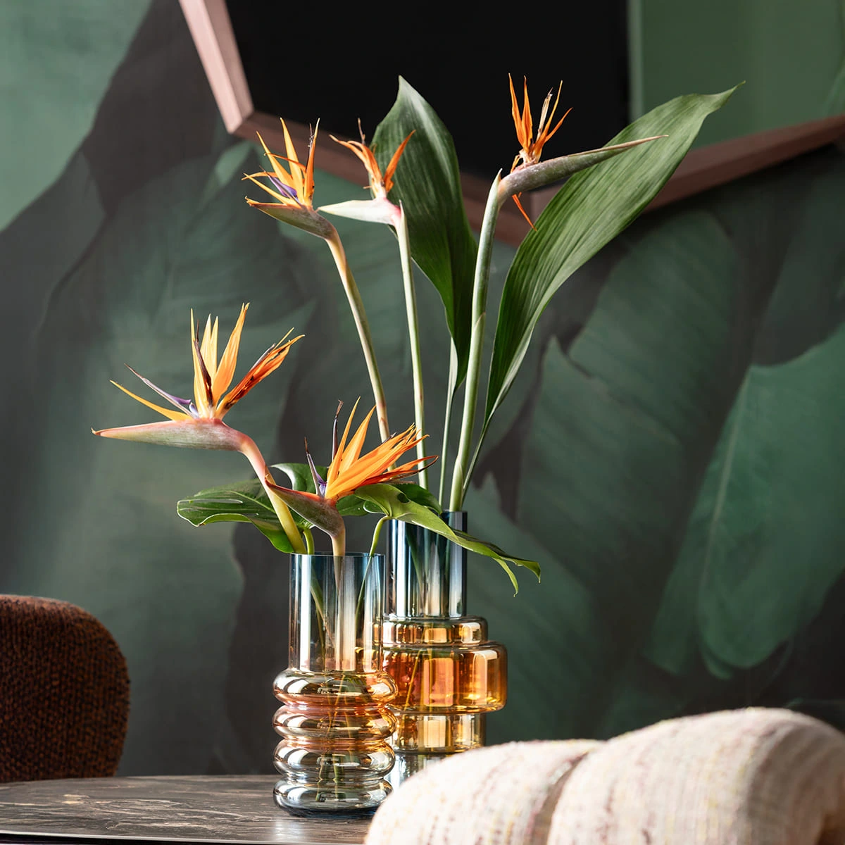 Discover the modern design of our Phenom glass vases! The artistic design stands out with its decorative character and blends seamlessly into any living style. The quality of the glass and the brilliance of its color give flowers the perfect setting. Use the flower vase as an eye-catcher on the dining table, in the living room or as a gift for special occasions.