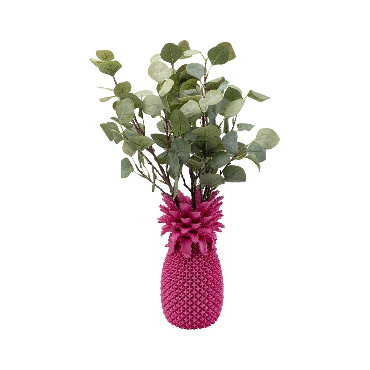 The Pineapple vase in pink is a playful decorative accent designed to add personality and charm to modern interiors. Its textured pineapple form brings a whimsical yet stylish touch to decorative arrangements. Made from durable polyresin, this vase features detailed surface texture and a soft pink finish. Its sculptural design works beautifully as a standalone décor piece or as part of a curated display.