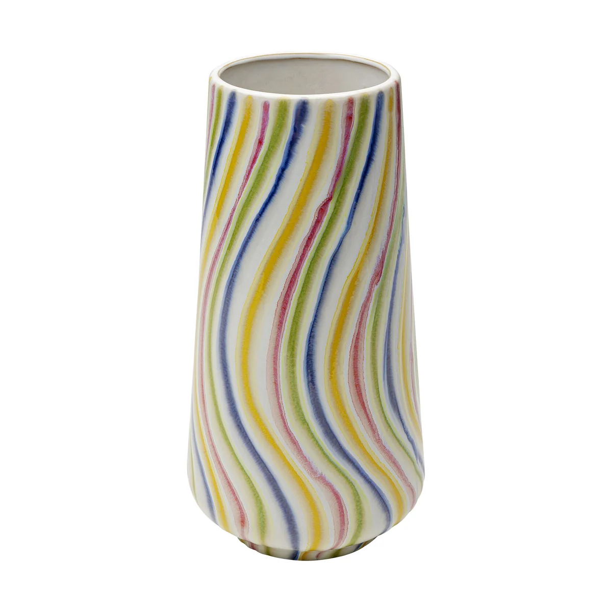 • Small ceramic vase in bright colors, 34 x 14.5 x 14.5 centimeters (H/W/D) • Colorful, dynamic brushstrokes in a watercolor look are particularly effective on a white background • This flower vase perfectly complements minimalist, Scandinavian or maritime furnishing concepts • Made by hand from high-quality stoneware, the vase impresses with its glossy surface • Whether as a soloist or with flowers - this designer vase is guaranteed to attract admiring glances