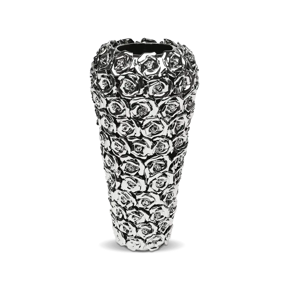 Benefits of the Mult Chrome Rose Vase include its durability and easy maintenance. The lacquered earthenware ensures longevity, while the silver chrome finish complements a wide range of home decor styles, enhancing the overall look of your space.