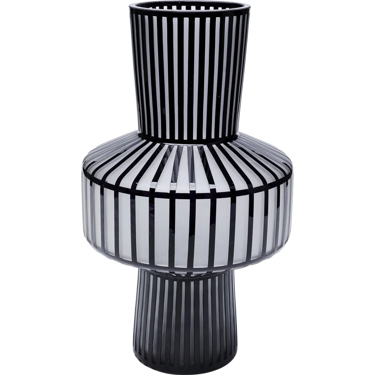 This vase measures L 23.5 cm, D 23.5 cm, and H 42 cm. Crafted from satined glass, it showcases a sophisticated black finish and a belly design that adds a modern touch to any space. The Roulette vase is a perfect blend of functionality and elegance.