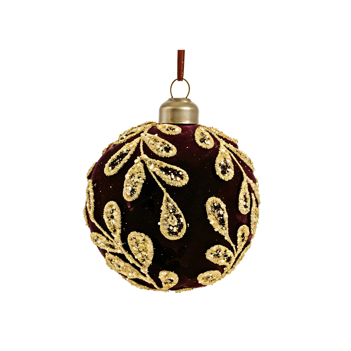 Charm your space with our Burgundy Velvet Glass Ball Ornament with Gold Glitter - Small. This ornament brings a touch of luxury to your festive decorations.