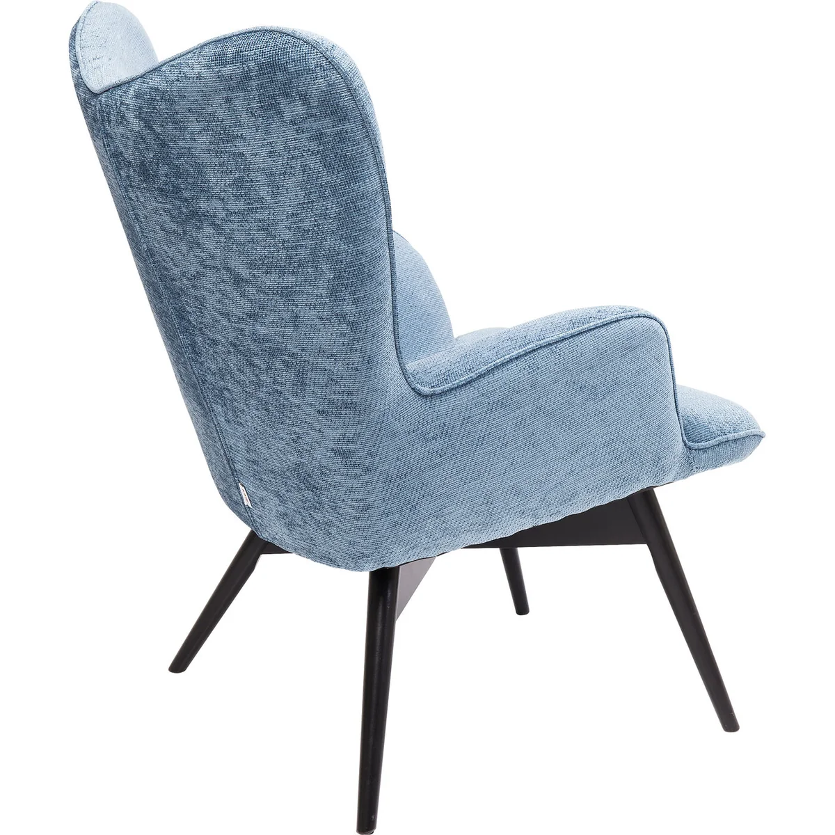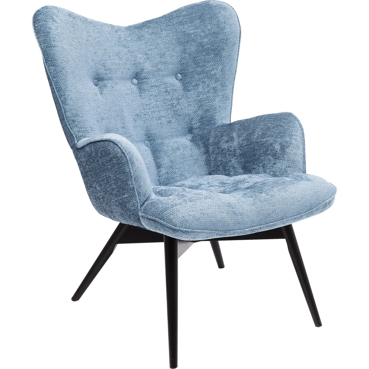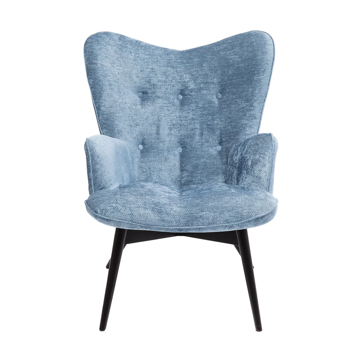 Has the potential to become your favourite place - this armchair with its curved seat shell, soft, textured cover and dark lacquered legs. Also available in velvety tones, woolly white or with a jungle print. The Vicky range also includes upholstered benches and stools.