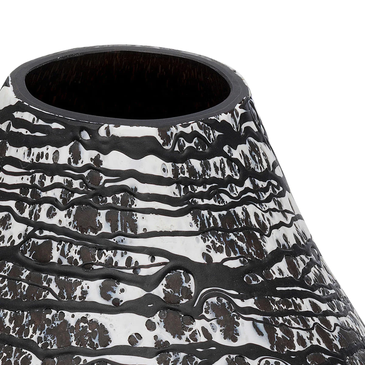 A touch of retro meets modern art form: this glass decorative object combines an organic shape with a high-contrast black and white look, making it an expressive highlight in the room. The playful pattern creates graphic tension and is ideal for styling with monochrome interiors or clean lines. As a soloist on consoles or in an ensemble with minimalist accessories, it creates an artistic look with gallery flair. Glass vases with a striking design not only set the scene for flowers, but also add a touch of creative extravagance to the ambience.