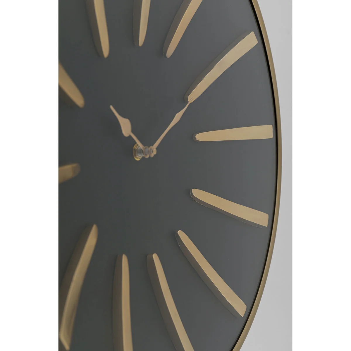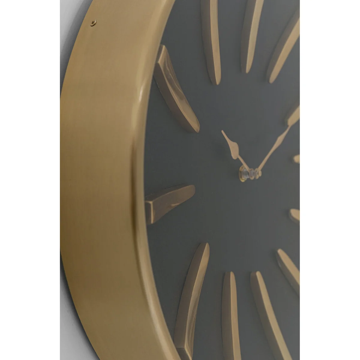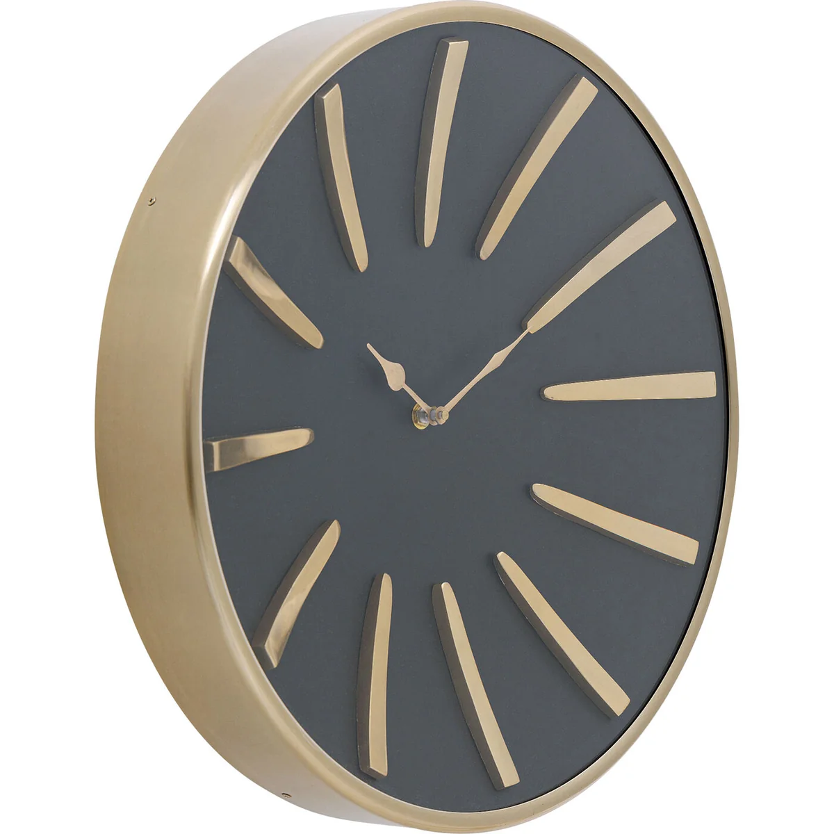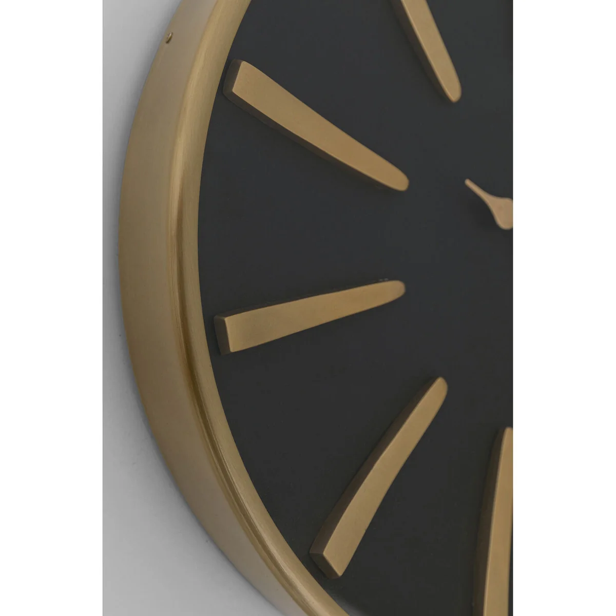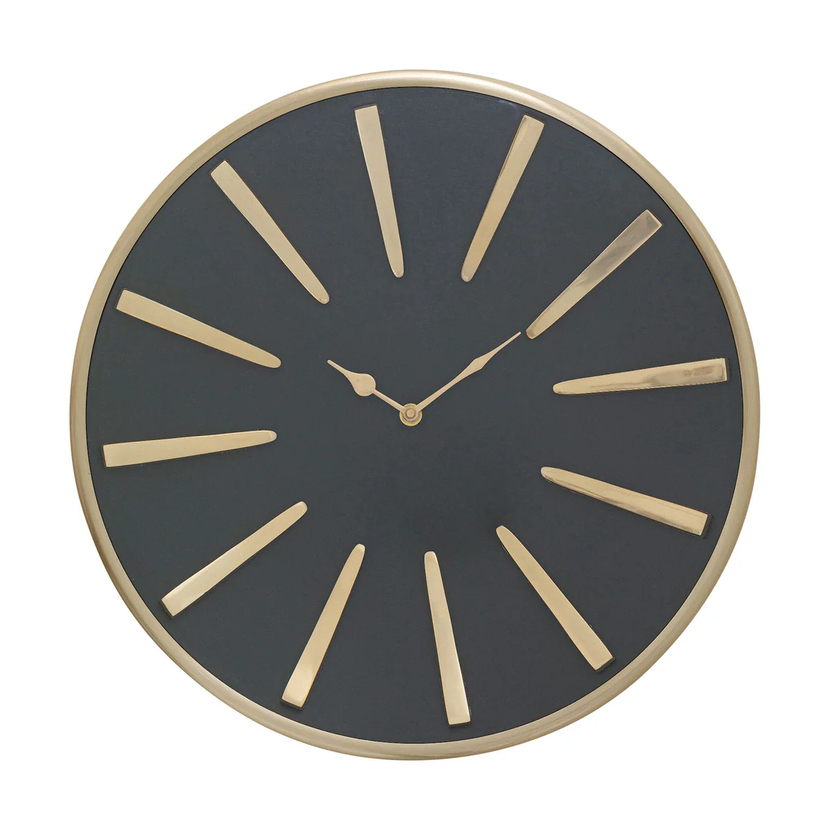 - Round metal clock for the wall in black and gold, measuring 41 x 41 x 5 centimetres (H/W/D) - Its inwardly curved face gives the living room clock an unusual look - With a diameter of 41 cm it is large enough for any wall in the hallway, kitchen or office - A timeless modern shape with a touch of retro style, the metal is finished with a brass coating - Battery-operated quartz clock mechanism, suitable for 1 x 1.5 V, AA LR6 Mignon (battery not included)