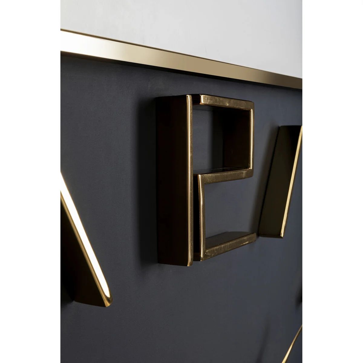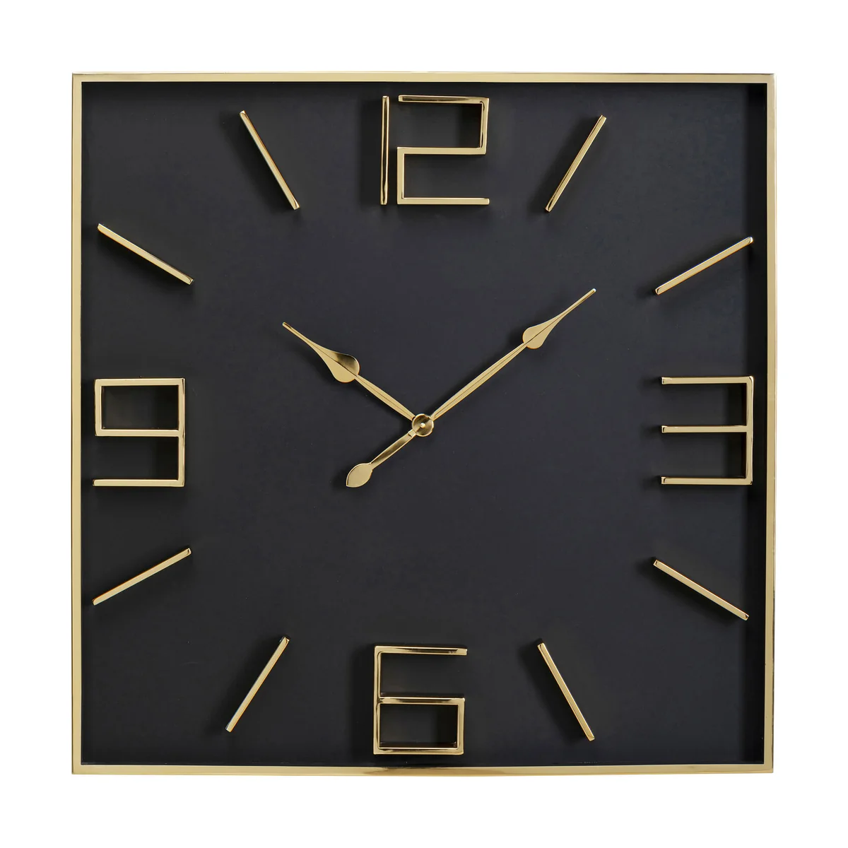 • Square clock for the wall in gold and black, 92 x 92 x 6 cm (H/W/D) • Sturdy frame made of stainless steel, numbers made of metal with brass coating • Thanks to its size, this classically modern clock also takes on the role of a stylish wall decoration • The quartz clock runs on an AA LR6 1.5V Mignon battery (not included) • Easy mounting thanks to a recess for wall hooks on the back
