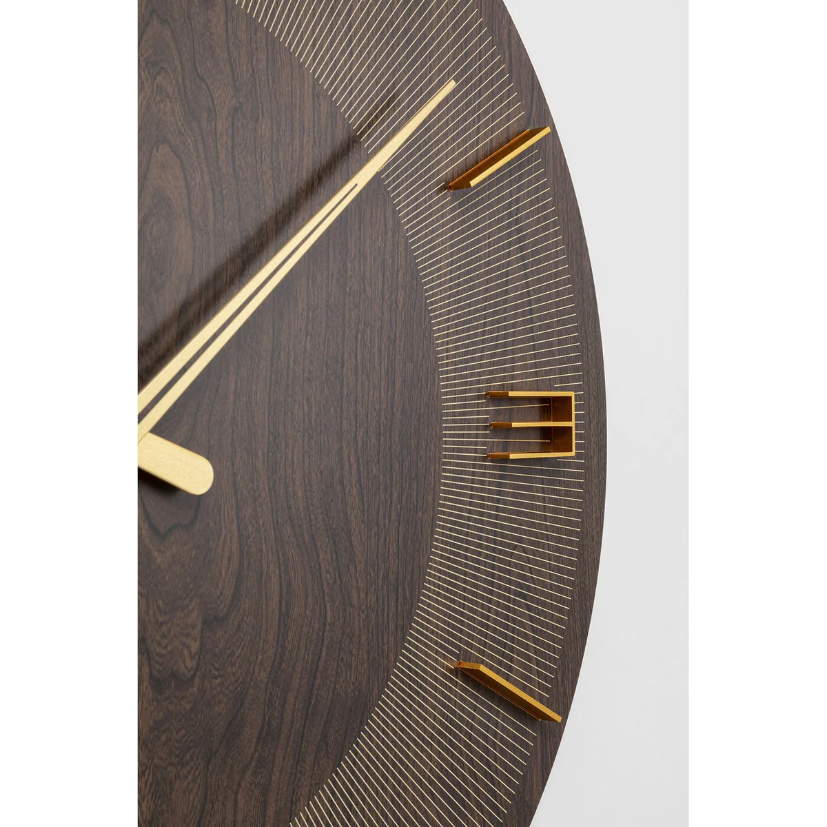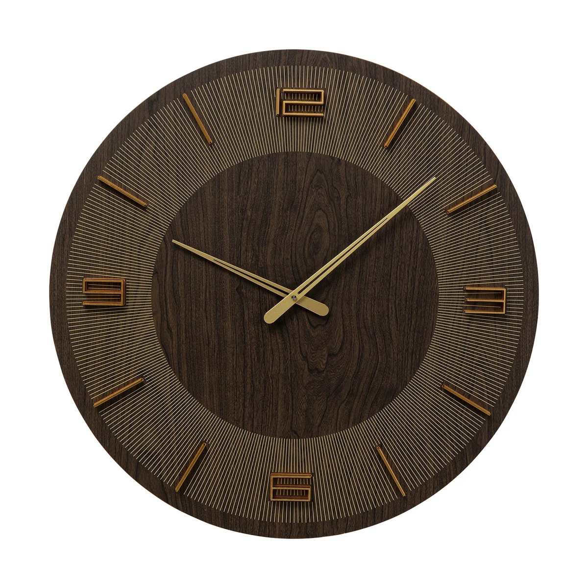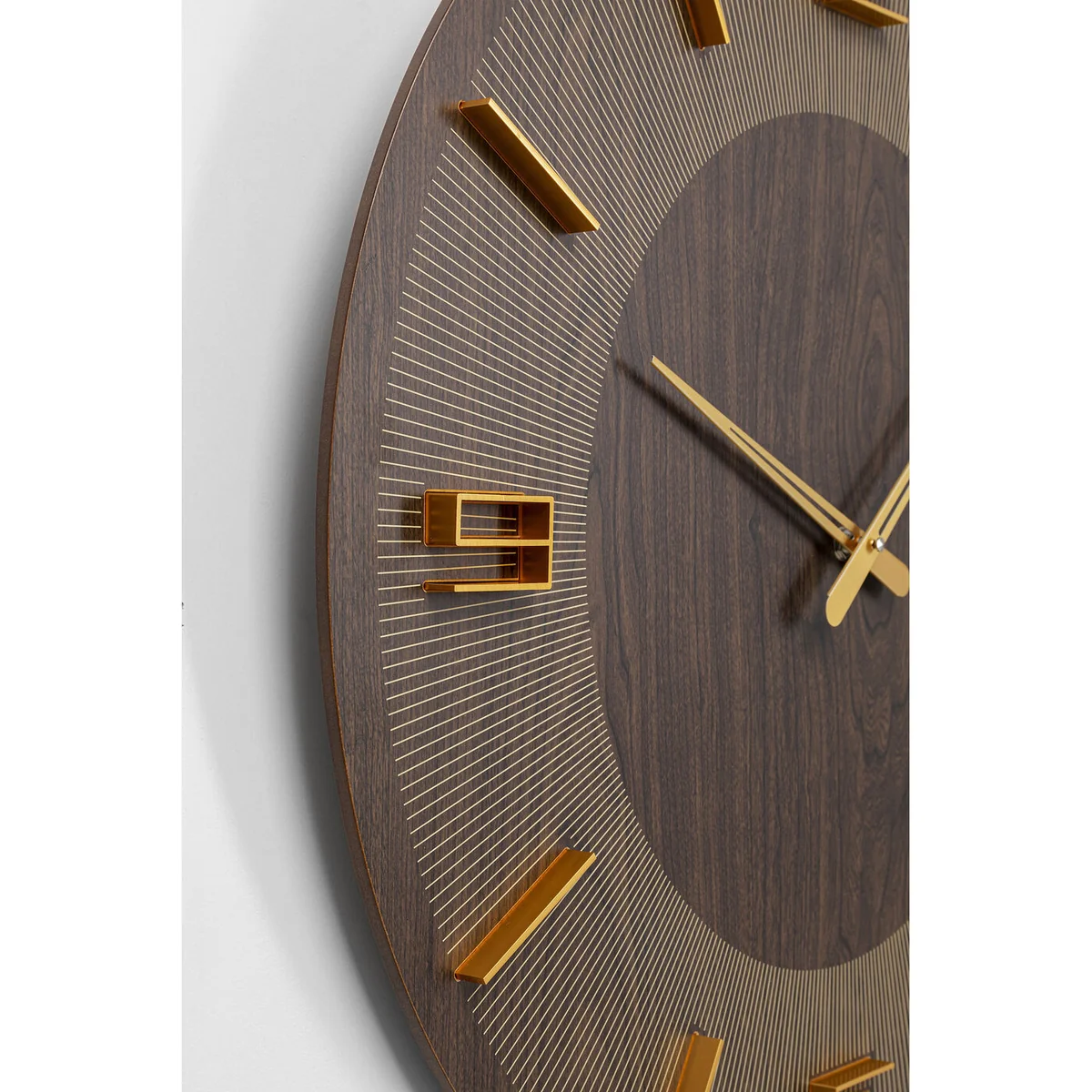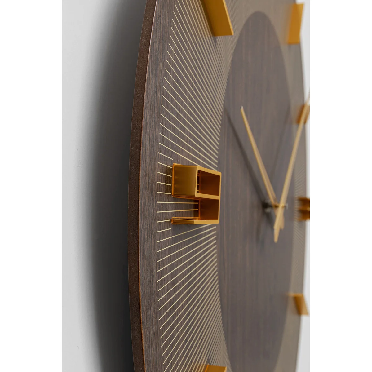 - Thanks to its 60 cm diameter it's a great eye-catcher, especially in large rooms - The design in a dark wood look is striking - Analogue numerals in stylised form - Timepiece, design object and wall decoration in one - It’s also easy to hang