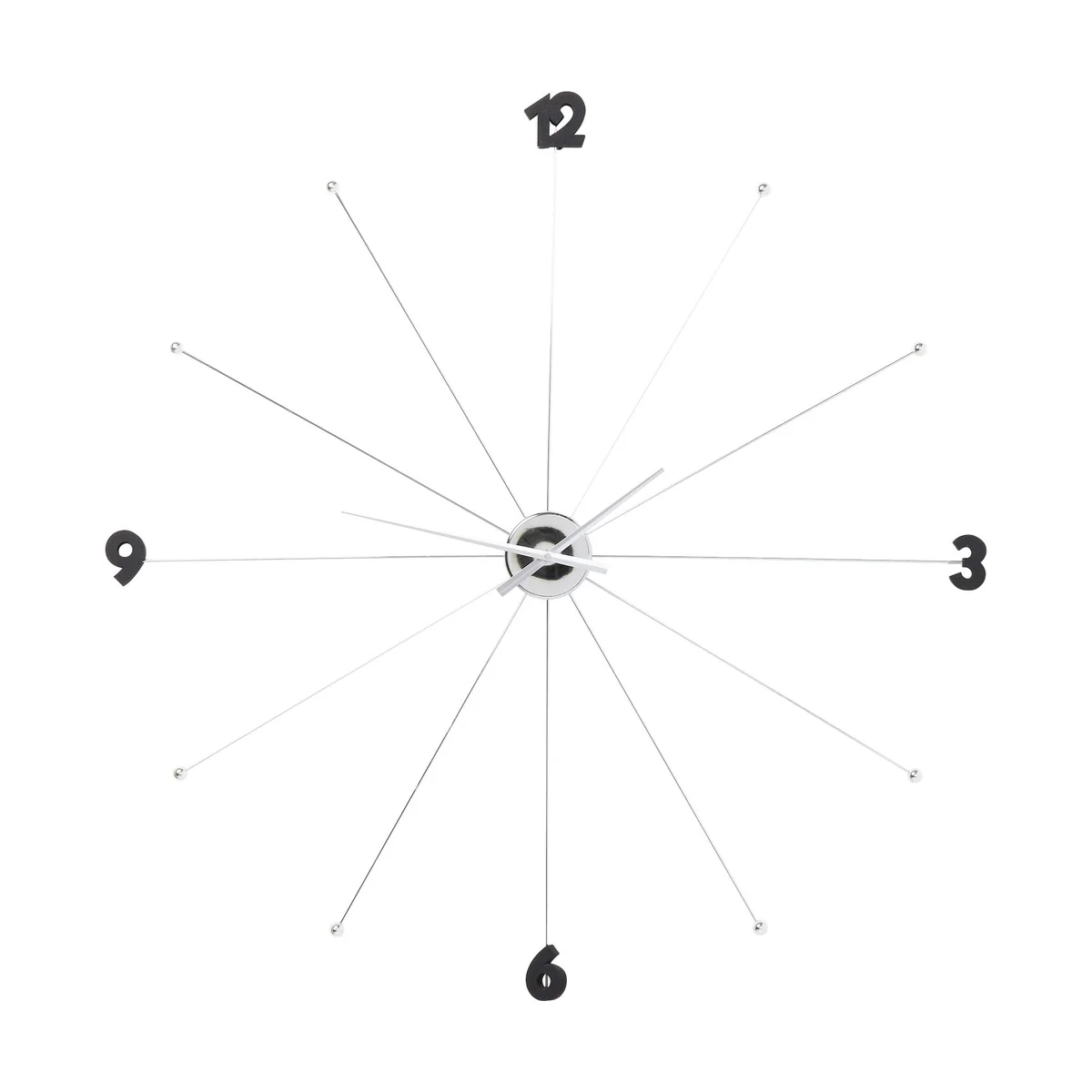 This wall clock in the design of an open umbrella combines sculptural elegance with functional timekeeping. The polished steel frame with a chrome finish radiates modern luxury and adds a shiny accent to any wall. The minimalist numerals - only the 3, 6, 9 and 12 are shown as numbers - underline the purist design and make the room appear spacious. Ideal for loft apartments, modern kitchens or as a statement in hallways, this clock blends harmoniously into various interior design styles. Its delicate structure and elegant coloring make it an eye-catcher that is both functional and aesthetically pleasing.