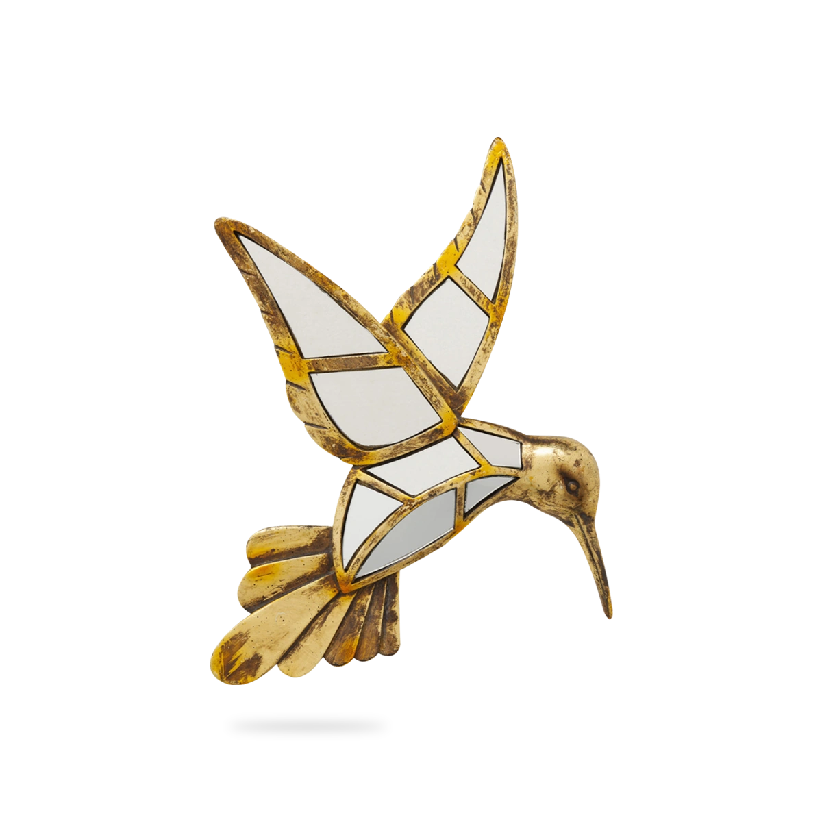 The attractively shiny hummingbird motif mirror is a real eye-catcher for your wall. The mirrored glass and the shimmering, golden frame make the decoration an elegant favourite. The bird mirror is suitable for both modern and classic interiors and fits perfectly into the urban-jungle style. The hummingbird and/or other animal mirrors in the series are also a great choice as a gift.