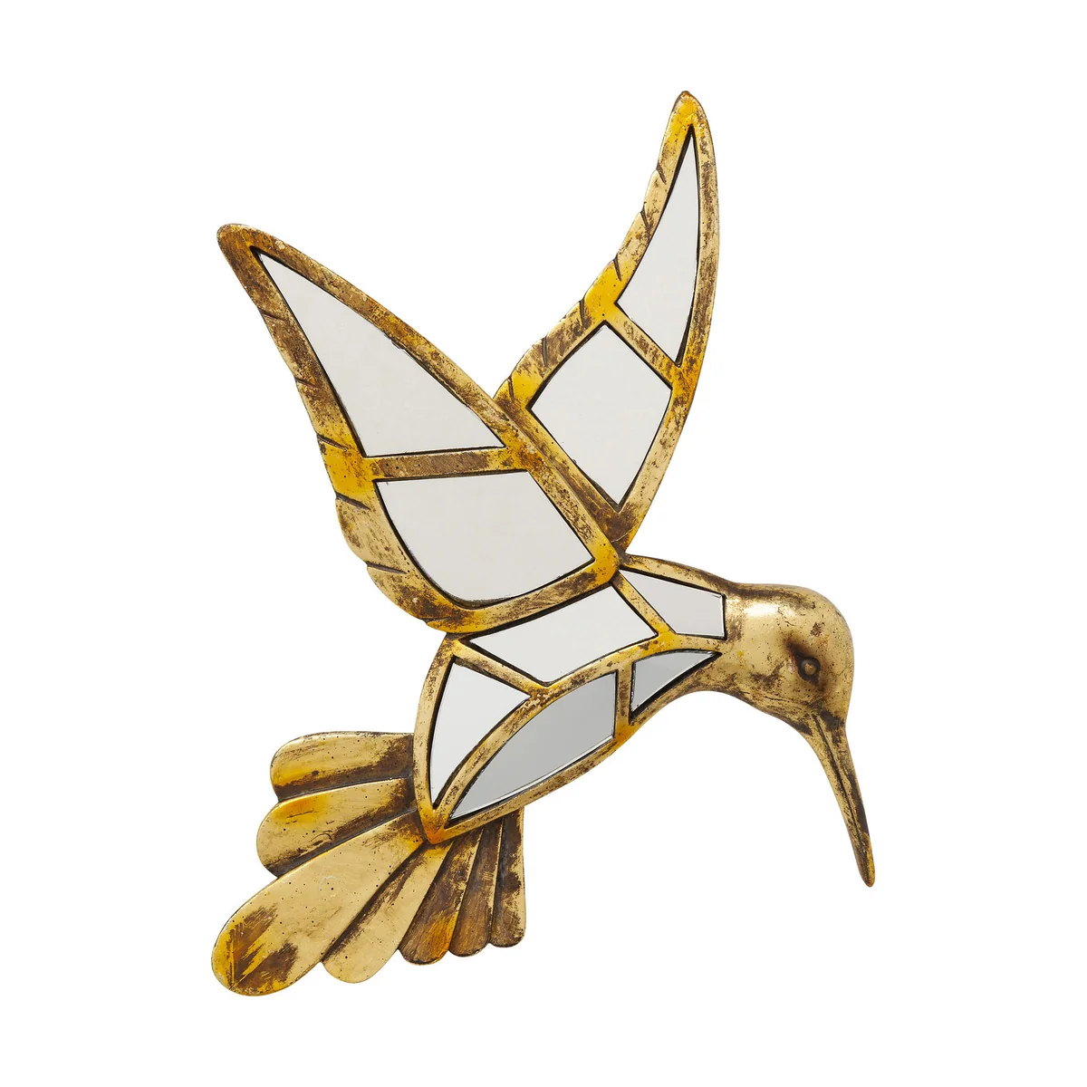 Golden Hummingbird Glass Mirror Wall Decoration, Size 27x4x32 cm