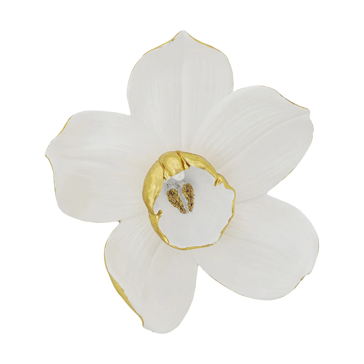 Key features of this wall decoration include a realistic orchid design and a striking white finish. Crafted from durable polyresin, it measures 40.1 cm in length, 12 cm in depth, and 44.3 cm in height, making it an ideal statement piece for any room.