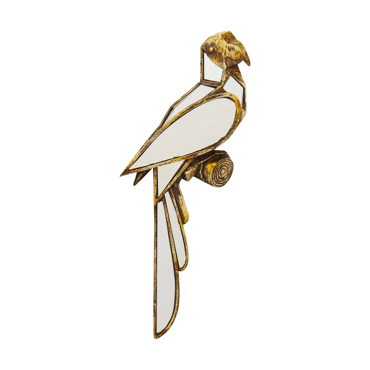 The handmade mirror is the perfect wall decoration for individualists who love playful and special accessories. The contours of the parrot are outlined in gold, while the mirrored glass casts light reflections into the room. The attractive wall decoration is an absolute focal point and also a nice idea as a gift for a house-warming or the opening of a new shop.